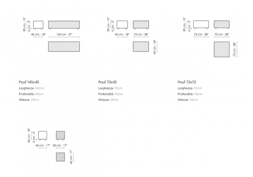 | Abmessungen | 145 x 45 cm; 73 x 45 cm; 73 x 73 cm; 42 x 42 cm. |