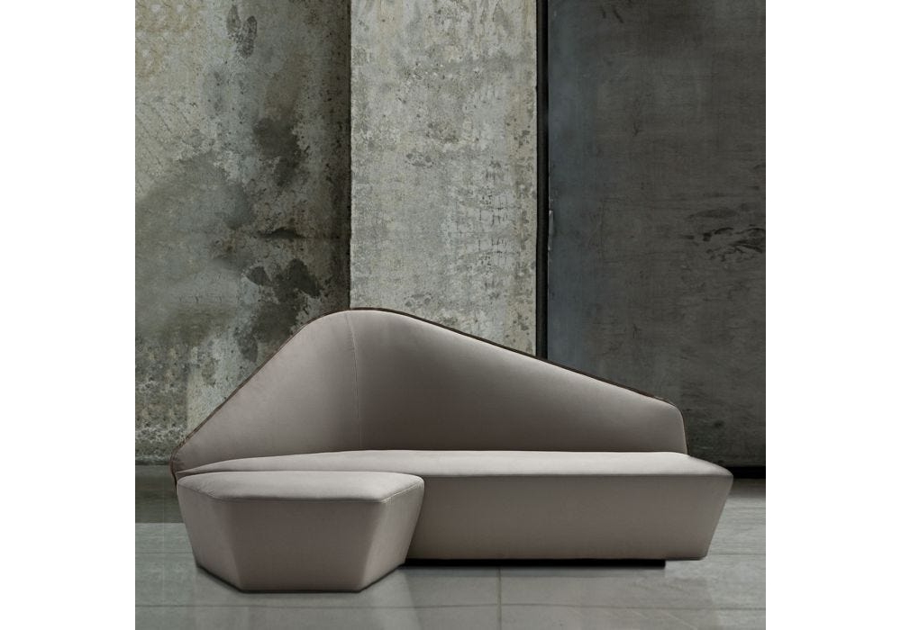 Verlaine, von Kateryna Sokolova für Driade entworfen, ist ein Hocker mit Struktur aus Polimex und MDF, Polsterung aus Polyurethanschaum unterschiedlicher Dichte, Holzfüße. Abnehmbarer Bezug aus Samt, Stoff oder Leder in verschiedenen Ausführungen. Nur für den internen Gebrauch.