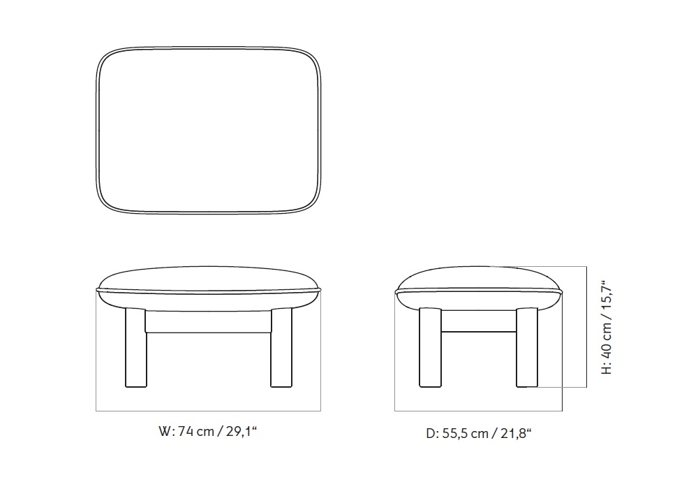 Brasilia von Anderssen & Voll für Audo Copenhagen entworfen, ist ein Fußhocker aus Eiche oder Nussbaum, mit Leder oder Schaffell bezogen. Erhältlich in verschiedenen Ausführungen.