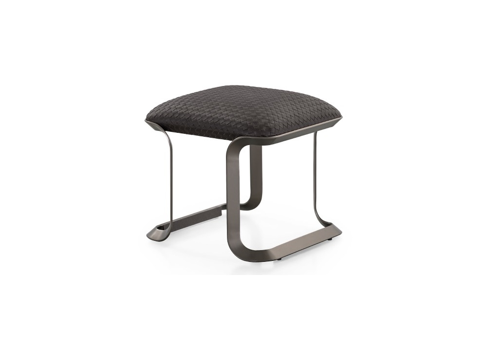 Milano von Blengini Ghirardelli für Turri entworfen, ist ein Sitzpouf mit Weberei mit Struktur aus Sperrholz mit Kissen aus Polyurethanschaum. Polsterung in verschiedenen Ledern. Metallbeine in gebürstetem Nickel-Finish mit Kunststofffüßen.
