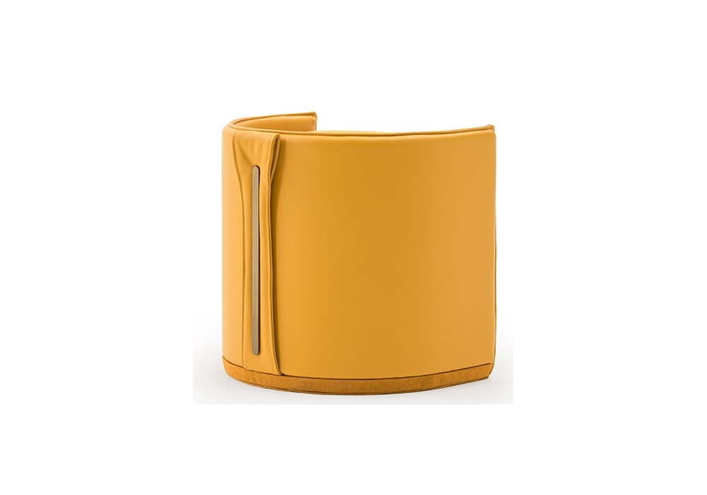 Vine von Frank Jiang für Turri entworfen, ist ein Sitzpouf mit Sperrholz- und Massivholzstruktur, die mit Polyurethanschaum gepolstert ist. Struktur- und Kissenbezug in verschiedenen Ledern oder Stoffen. Metallteile in gebürstetem Gold oder Bronze.