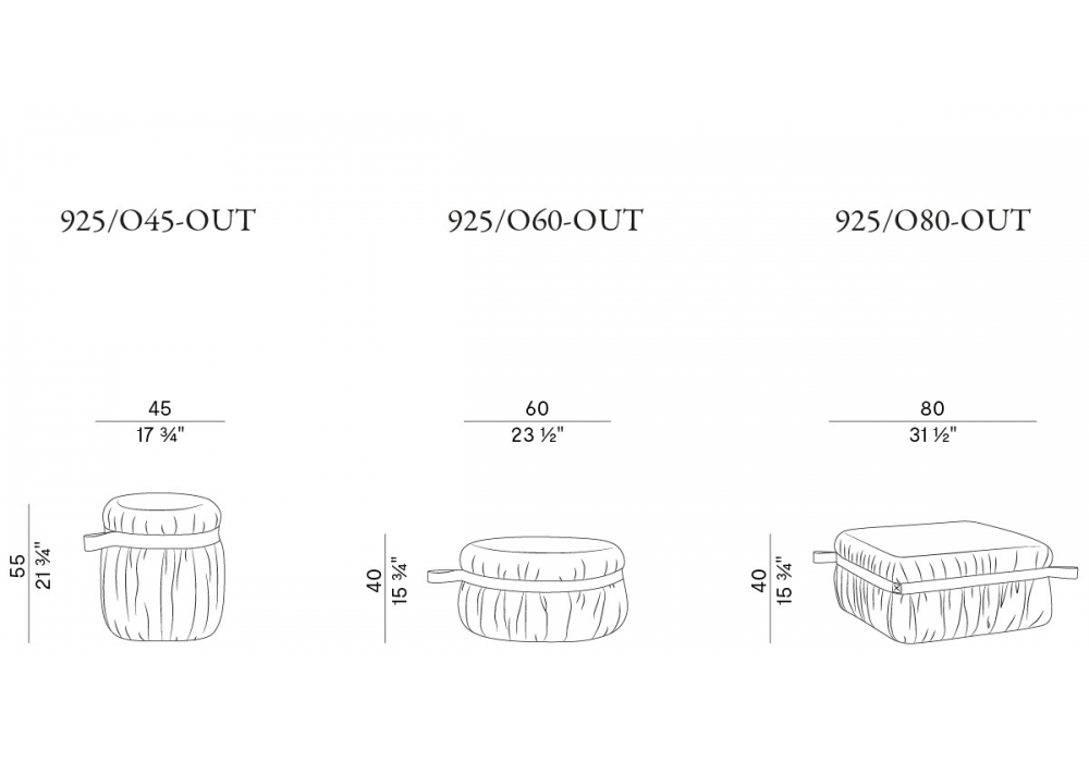 | Abmessungen | Ø 45 x H 55 cm; Ø 60 x H 40 cm; 80 x 80 x H 40 cm. |