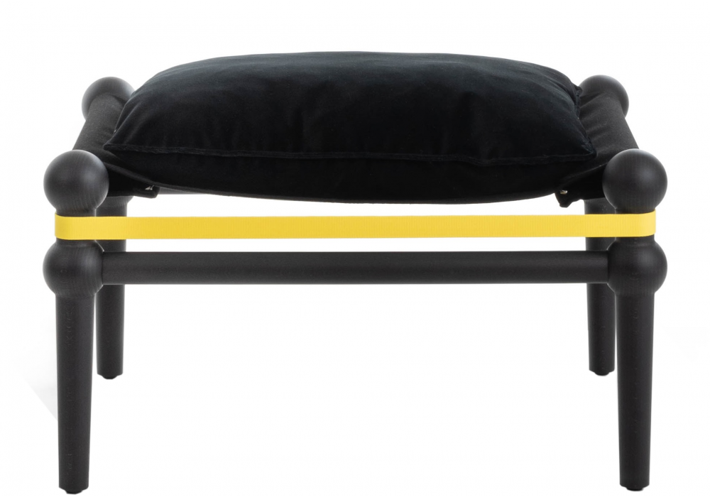 Twain von Konstantin Grcic für Magis entworfen, ist ein Ottoman mit Gestell aus massiver Buche und Sitz aus Stoff. Verfügbar in verschiedenen Ausführungen.