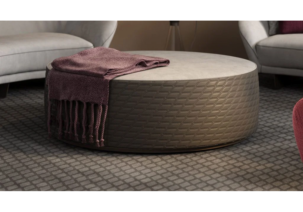 Circle von Emanuele Missaglia für Reflex Angelo entworfen, ist ein Sitzpuff mit innerer Holzstruktur und Sockel in Bronze-Finish. Bezug aus Stoff oder Leder mit optionaler seitlicher Steppung.