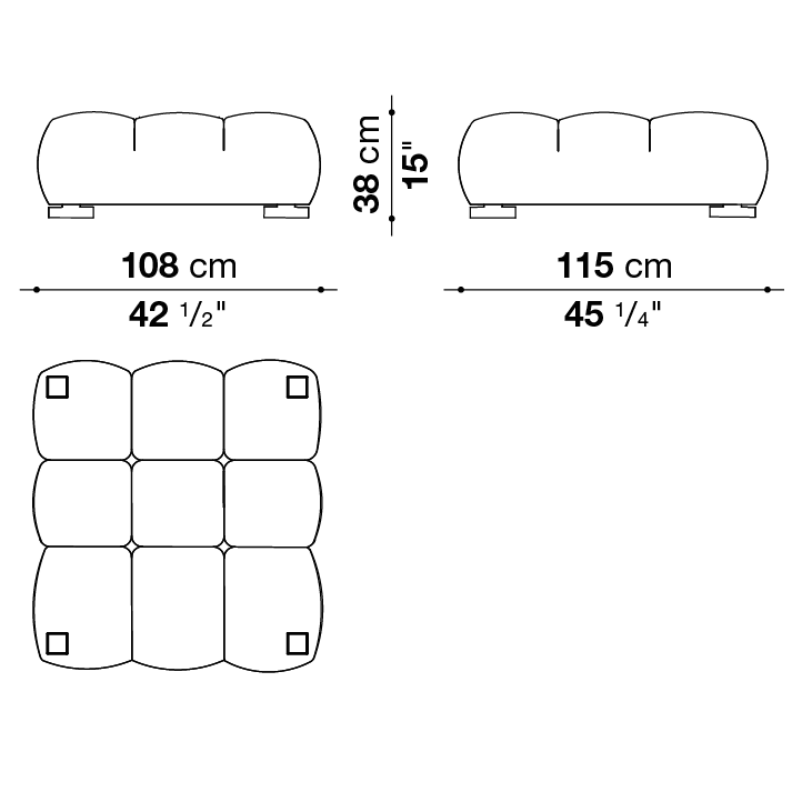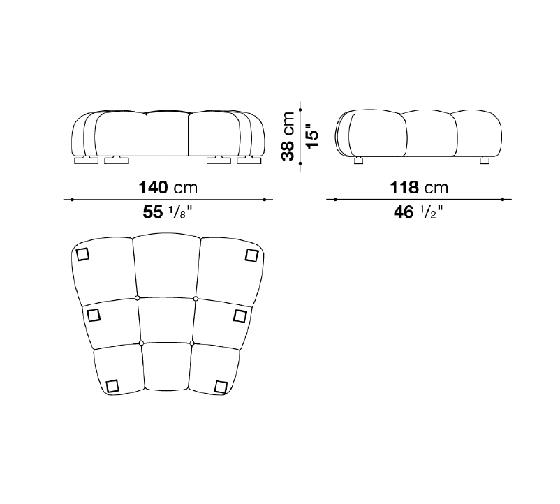 | Abmessungen | 108 x 115 x H 38 cm; 140 x 118 x H 38 cm. |