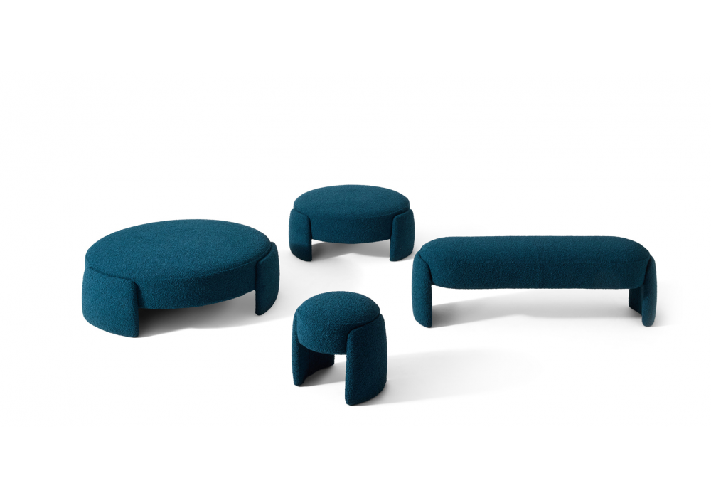 Ruuna von Patricia Urquiola für Cassina entworfen, ist ein Pouf mit Polyurethan-Polsterung mit einem Anteil an recycelten Polyolen und Wattierung aus recycelten Polyesterfasern. Abnehmbarer Stoffbezug. Verfügbar in mehreren Ausführungen und Abmessungen.