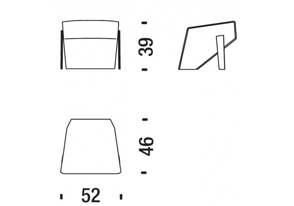 Wood frame, different-density non-deformable polyurethane foam and polyester fibre. Supporting structure in matte powdercoated steel. Optional armrest cushions in polyester fibre. The Silver Lake collection covers are not removable. Supporting structure colours.