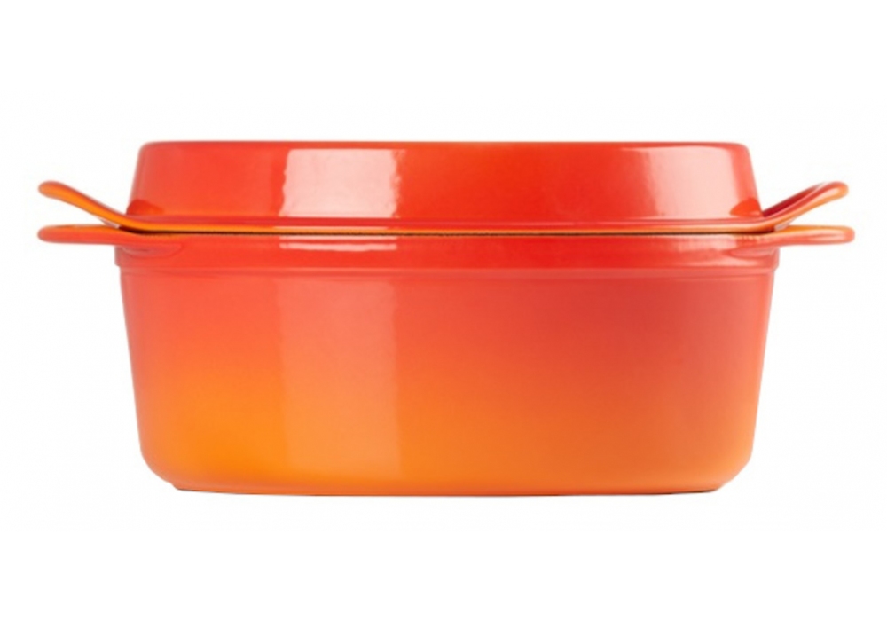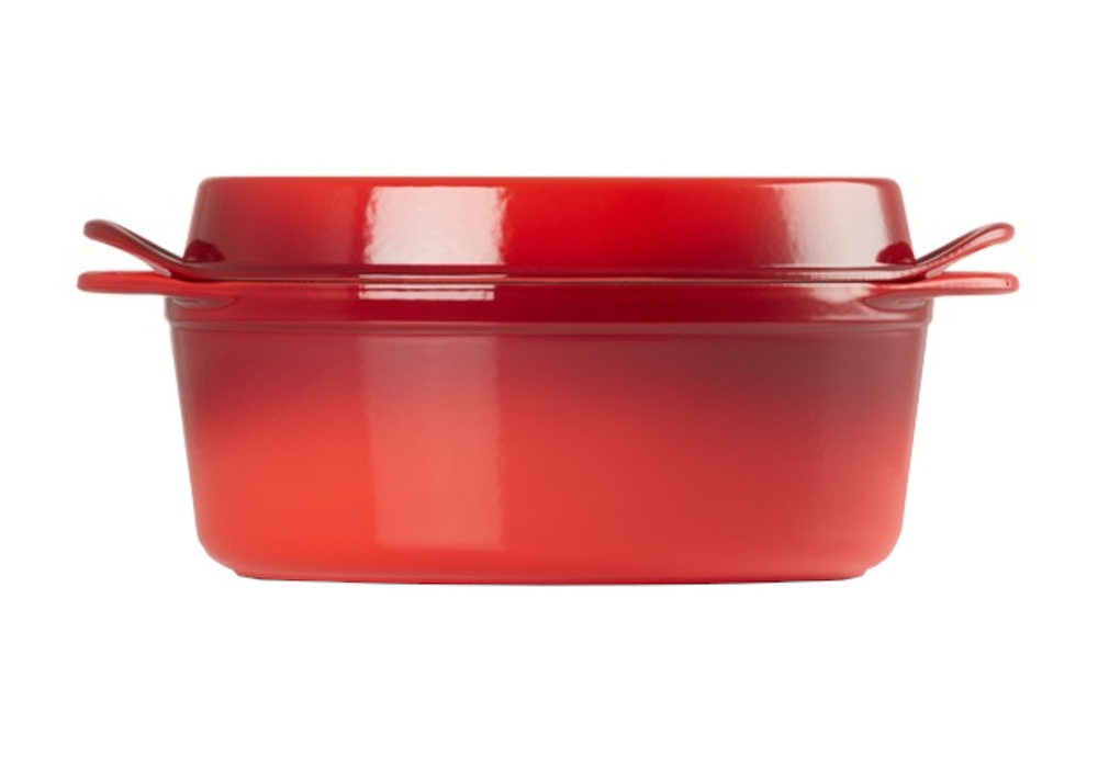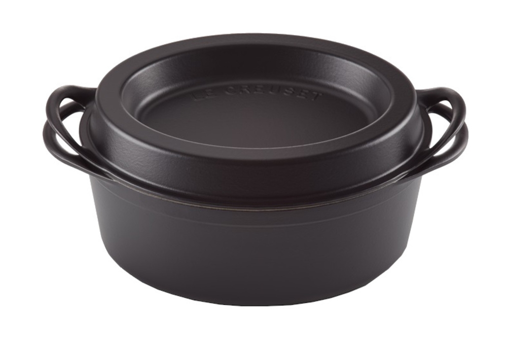 Doufeu Ovale 32 von Le Creuset entworfen, ist ein ovaler Auflauf aus Gusseisen, der in verschiedenen Farben erhältlich ist.