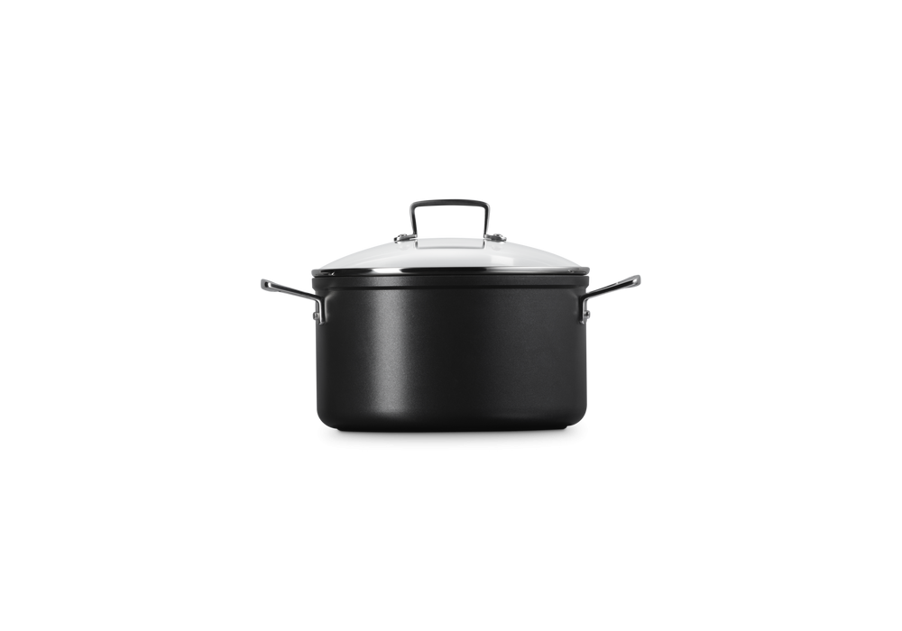 Pentola con Manici e Coperchio 24 von Le Creuset entworfen, ist ein Antihaft-Aluminiumtopf mit Glasdeckel.