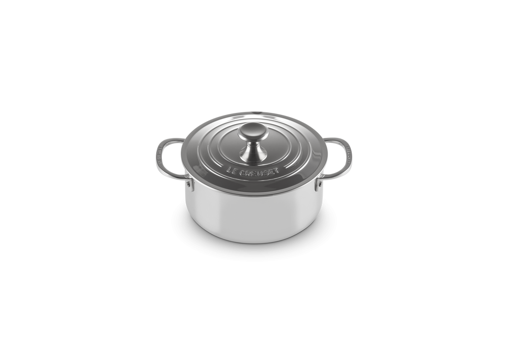Batteria 4 Casseruole von Le Creuset entworfen, ist ein Satz von 4 Aufläufen aus Edelstahl, darunter 3 hohe und 1 niedrige.