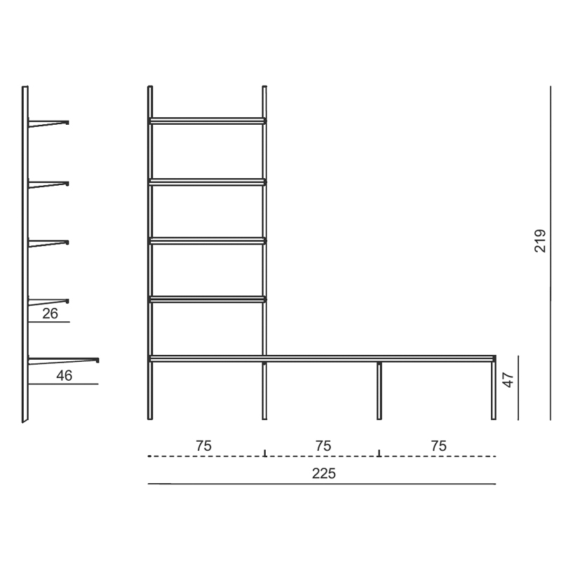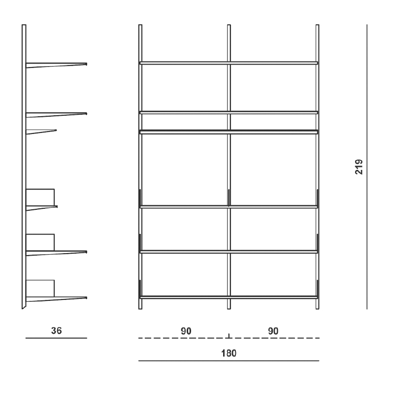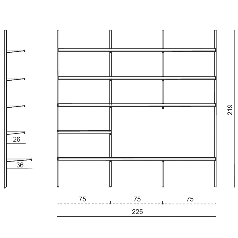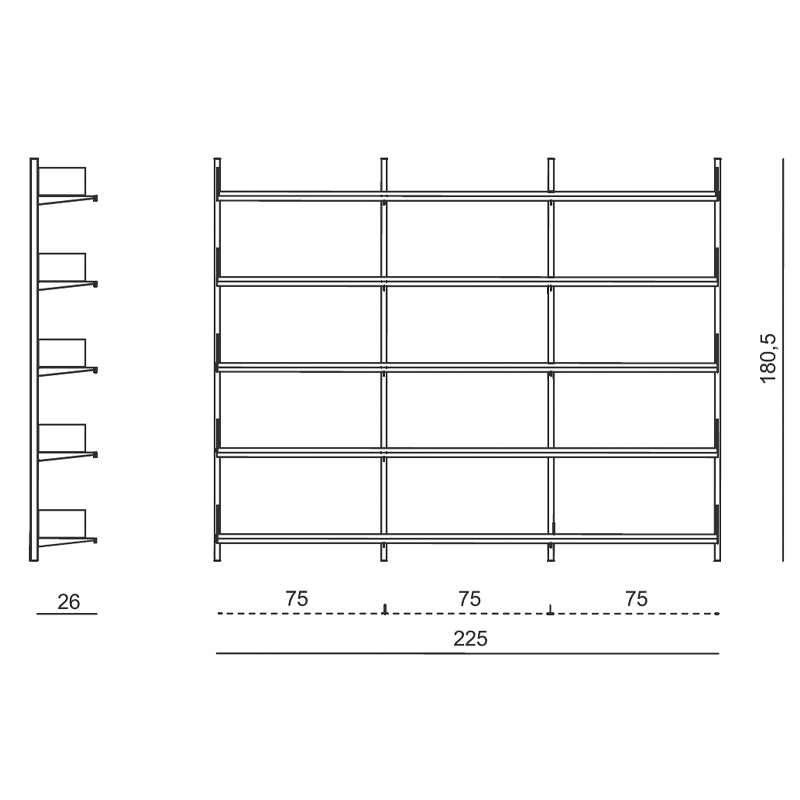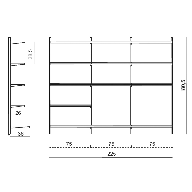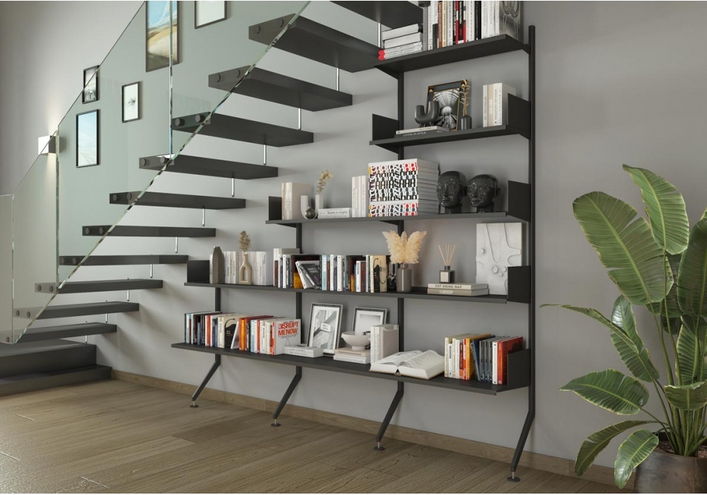 Continua, von Hannes Wettstein für Pallucco entworfen, ist ein modulares Bücherregal/eine ausgestattete Wand mit Aluminiumregalen und Tragstruktur und Füßen aus lackiertem Stahl.