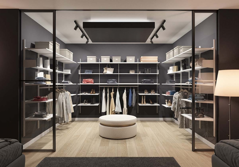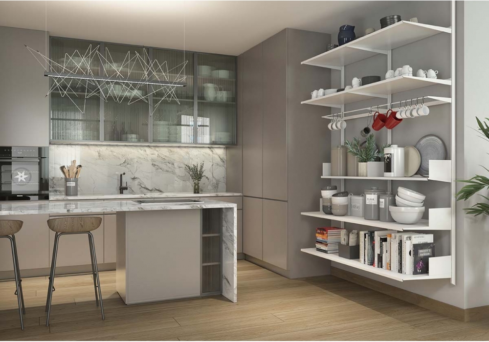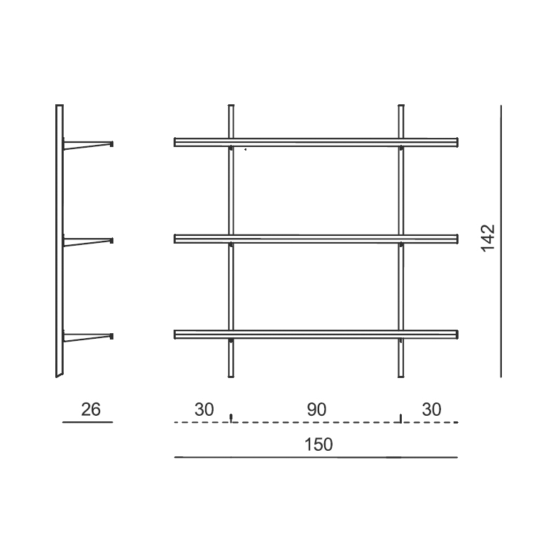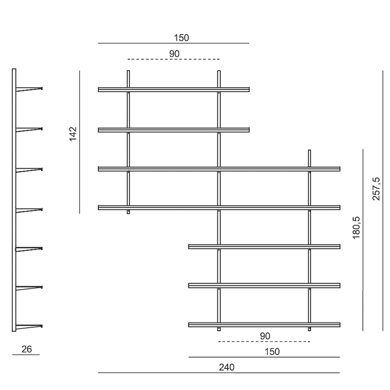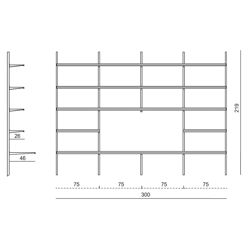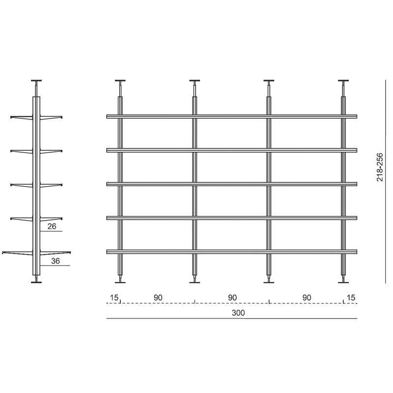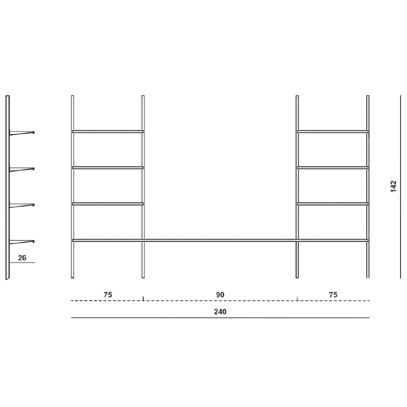 Continua, von Hannes Wettstein für Pallucco entworfen, ist ein modulares Bücherregal/eine ausgestattete Wand mit Aluminiumregalen und Tragstruktur und Füßen aus lackiertem Stahl.