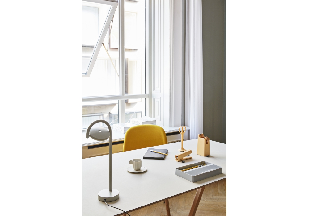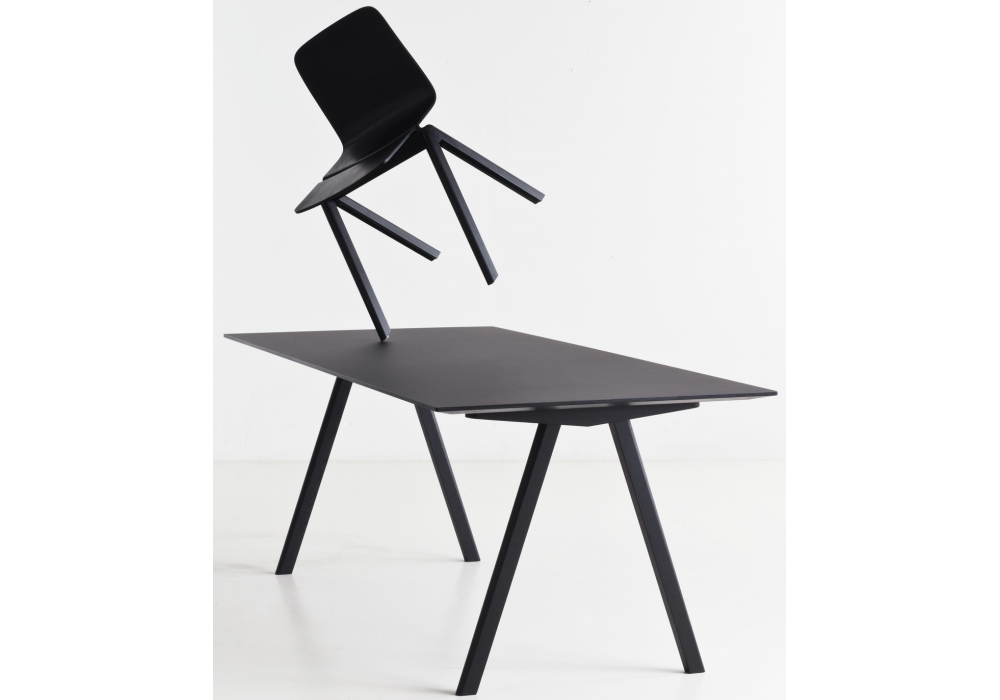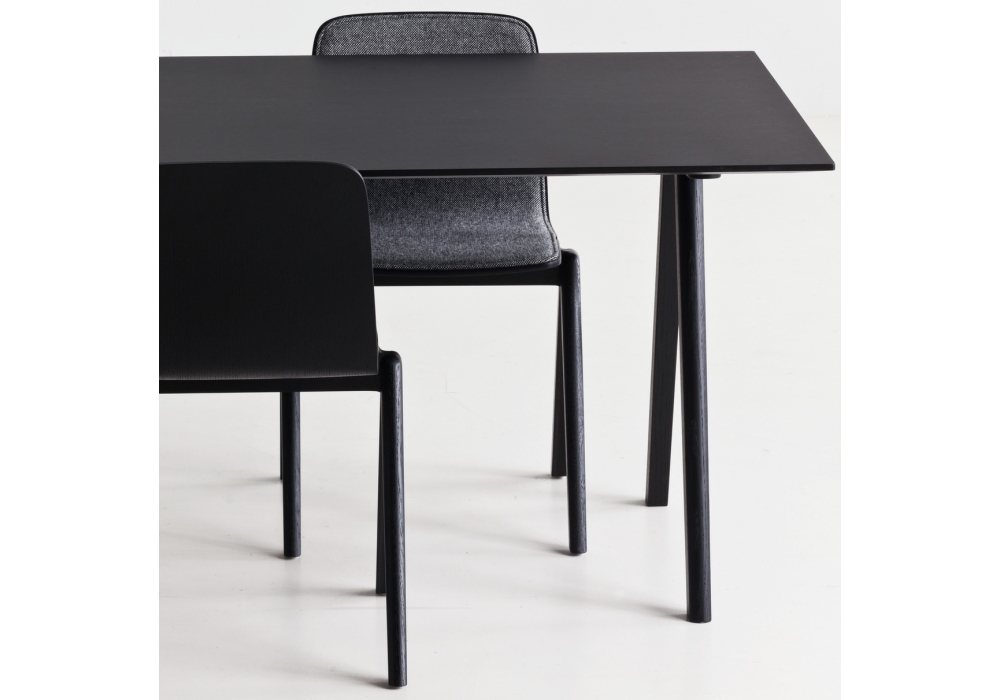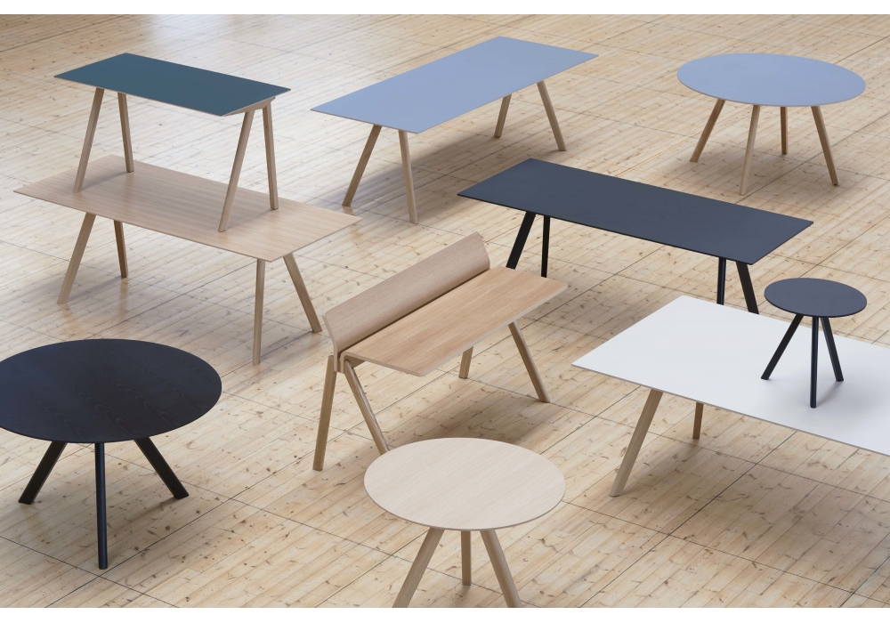 Copenhague Desk CPH10 von Ronan und Erwan Bouroullec für Hay entworfen, ist ein Schreibtisch mit Sperrholzplatte mit Laminat, Linoleum oder Furnier in verschiedenen Ausführungen. Die Kante der Tischplatte passt zum Finish des Gestells. Schräge Holzbeine verfügen über eingebaute, einschraubbare, nicht sichtbare, verstellbare Füße, die verlängert werden können, um den Tisch auf unebenen Oberflächen auszurichten. Verfügbar in verschiedenen Ausführungen.