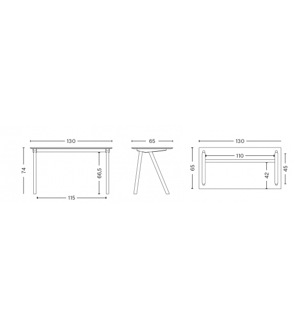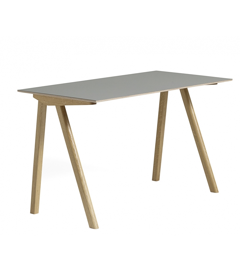 Copenhague CPH 90 entworfen von Ronan und Erwan Bouroulec für Heu, ist ein Schreibtisch mit Top in Laminat, Linoleum oder Furnier in verschiedenen Oberflächen. Der Rand der Tabelle entspricht dem Finish des Rahmens. Schrägte hölzerne Beine mit unsichtbaren, verstellbaren Füßen, die auf ungleichmäßige Oberflächen ausgedehnt werden können, um den Tisch zu beseitigen. Verfübar in verschiedenen Oberflächen.