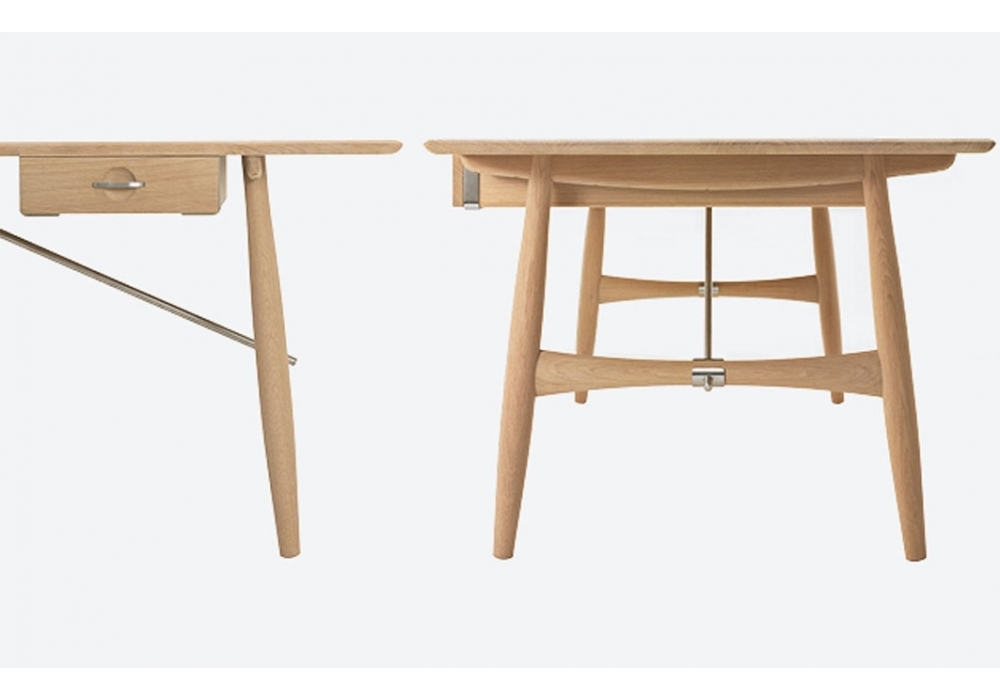 PP571 Architect's Desk, signed by Hans J. Wegner for PP Møbler, is a wooden desk with locks in both drawers. The desk marks the beginning of Wegner's work on combining sharp steel and sculptural solid wood in most elegant and well-balanced solutions. In this respect the desk precedes such unique classics as the Swivel Chair, the Cross Legged Table and the pp75 table.