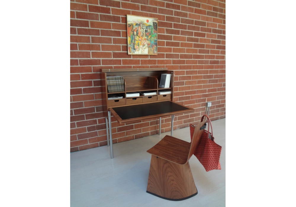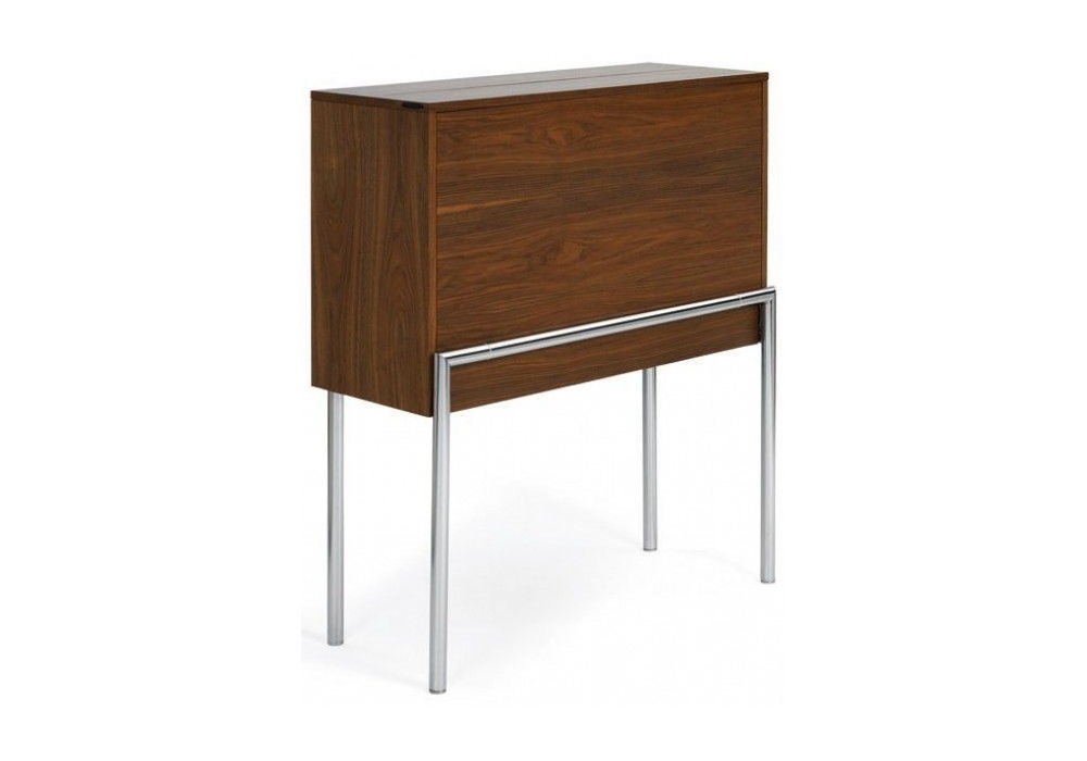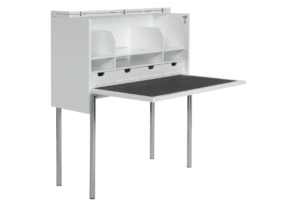 Orcus von Konstantin Grcic für ClassiCon entworfen, ist ein Sekretär aus MDF und Schichtholz, furniert oder hochglanzlackiert. Schreibplatte ausklappbar, 4 Schubladen, Geheimfach, Stauraum für Kabel + Netzgeräte. Abschließbar. Regalböden teilweise ausziehbar oder verstellbar. Gestell aus verchromtem Stahl. Höhenverstellbare Füße.