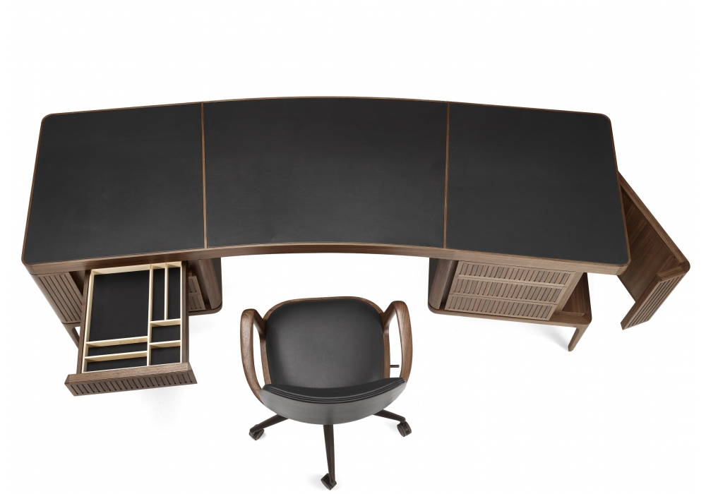 Paperweight von Roberto Lazzeroni für Ceccotti Collezioni entworfen, ist ein Schreibtisch aus massivem amerikanischem Nussbaum und Sperrholzfurnier, sechs Schubladen und zwei Seitentüren, Platte aus Leder. Auf Anfrage, Platte aus Holz.