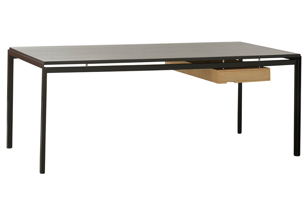 PK52 Professor Desk von Poul Kjærholm für Carl Hansen & Søn entworfen, ist ein Schreibtisch mit einem schwarz pulverbeschichteten Stahlrahmen. Die Tischplatte ist in Eichenfurnier in verschiedenen Ausführungen erhältlich. Verfügbar mit oder ohne Schublade.