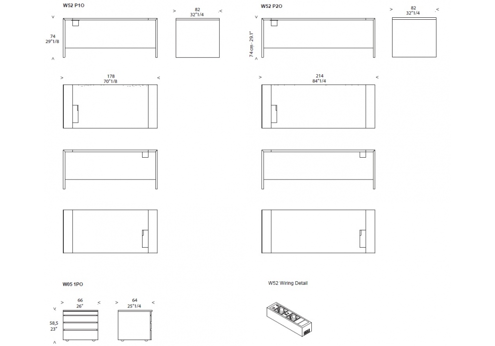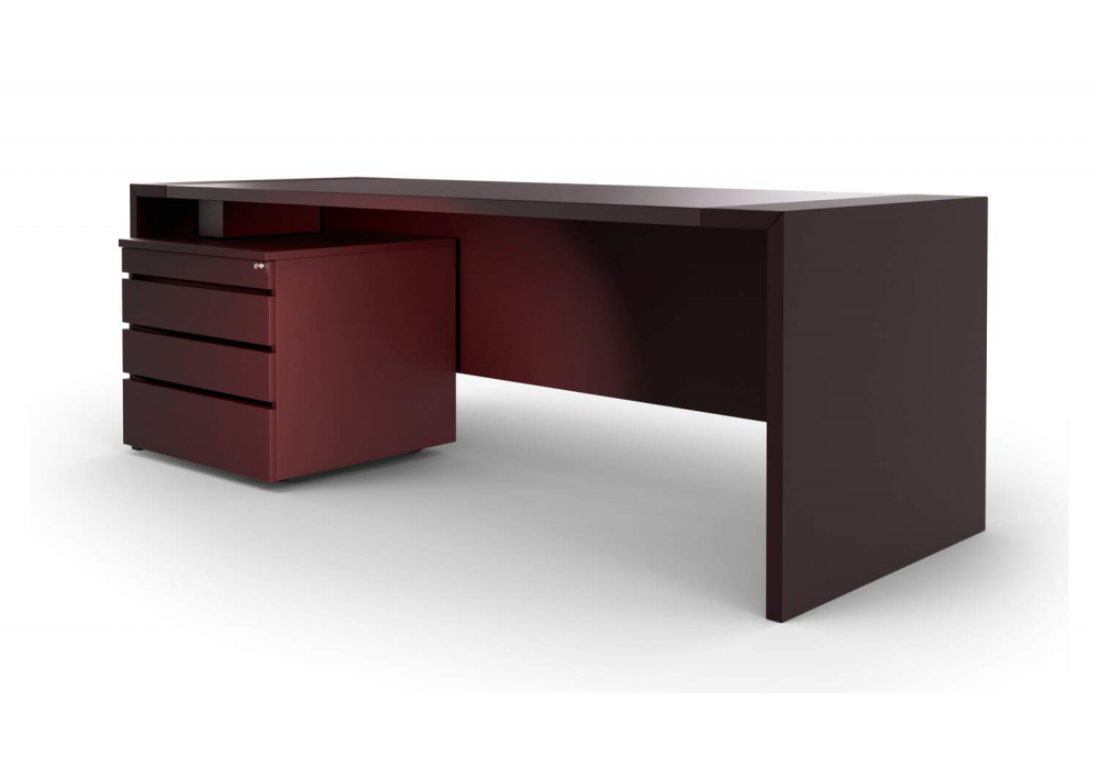 W52 Loop von Kazuhide Takahama für Cassina entworfen, ist ein Schreibtisch mit Kommode mit matt lackierter Struktur und mit Leder bezogener Platte. Erhältlich in verschiedenen Ausführungen, Abmessungen und Version.
