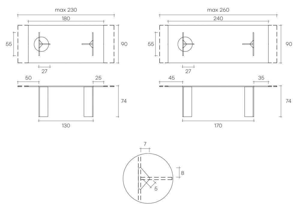 *Auch mit individuellen Aufsätzen erhältlich, bis zu einer Länge von 260 cm.