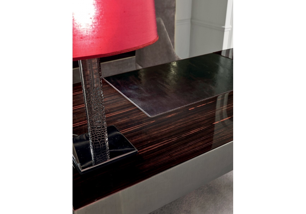 Gorky von Giuseppe Viganò für Longhi entworfen, ist ein Schreibtisch mit Basis aus geschliffenem Metall mit Schublade, Platte aus Holz oder glänzend lackiert mit Ledereinsatz und passender Mini-Kommode. Kommode in der gleichen Ausführung wie der Schreibtisch mit lederbezogenen Frontschubladen. Auf Wunsch auch ohne Schubladenelemente verfügabr.