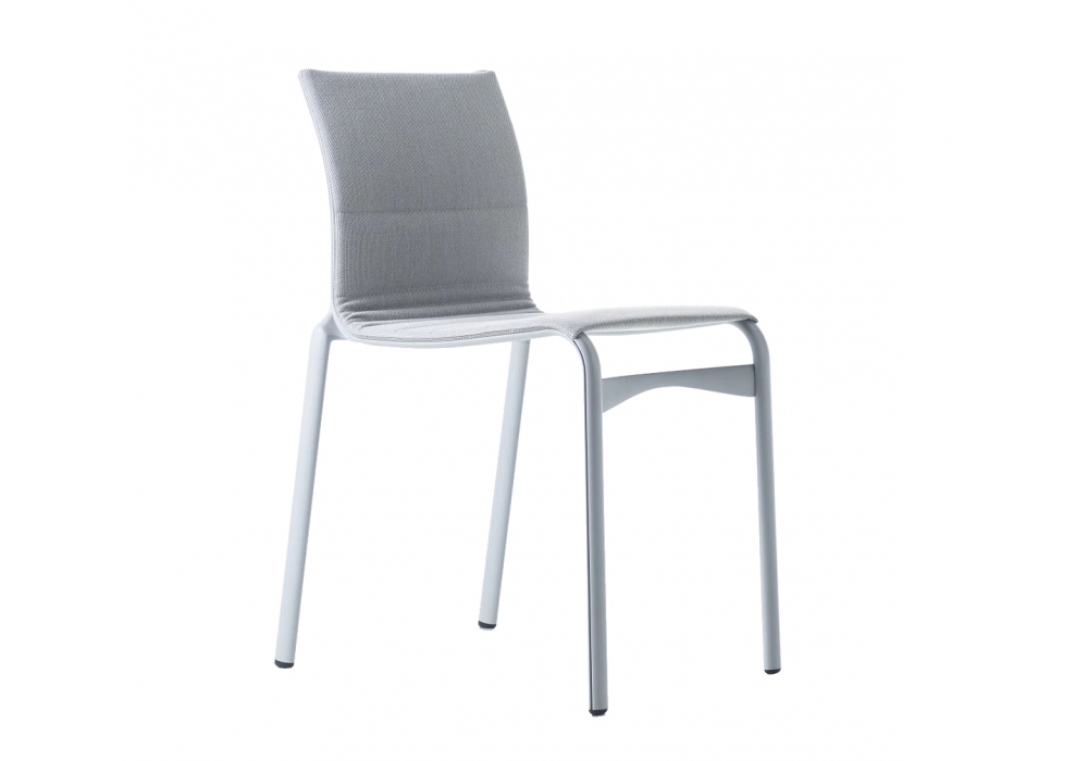 416 Highframe 40, entworfen von Alberto Meda für Alias, ist ein stapelbarer Stuhl aus extrudiertem Aluminiumprofil, Sitz und Rückenlehne, feuerhemmendes, PVC-beschichtetes Polyesternetz. Erhältlich in verschiedenen Ausführungen. Der Stoff ist auf einem Netz der gleichen Farbe wie die Struktur montiert.