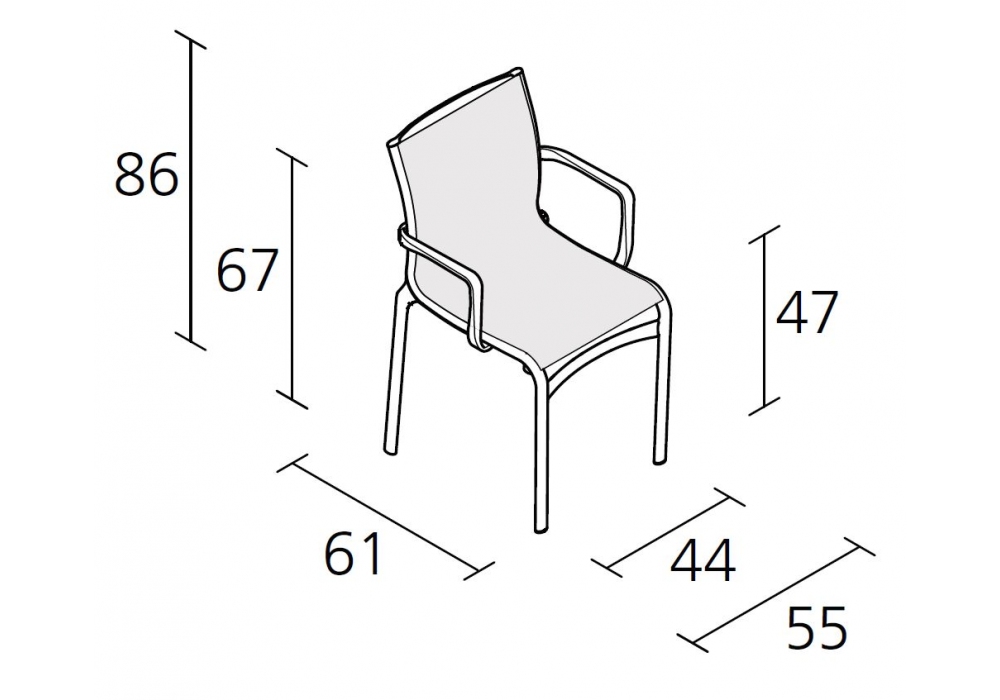 440 Bigframe 44, entworfen von Alberto Meda für Alias, ist ein Stuhl mit Armlehne aus extrudiertem Aluminiumprofil, Sitz und Rückenlehne, feuerhemmendes, PVC-beschichtetes Polyesternetz. Erhältlich in verschiedenen Ausführungen. Der Stoff ist auf einem Netz der gleichen Farbe wie die Struktur montiert.