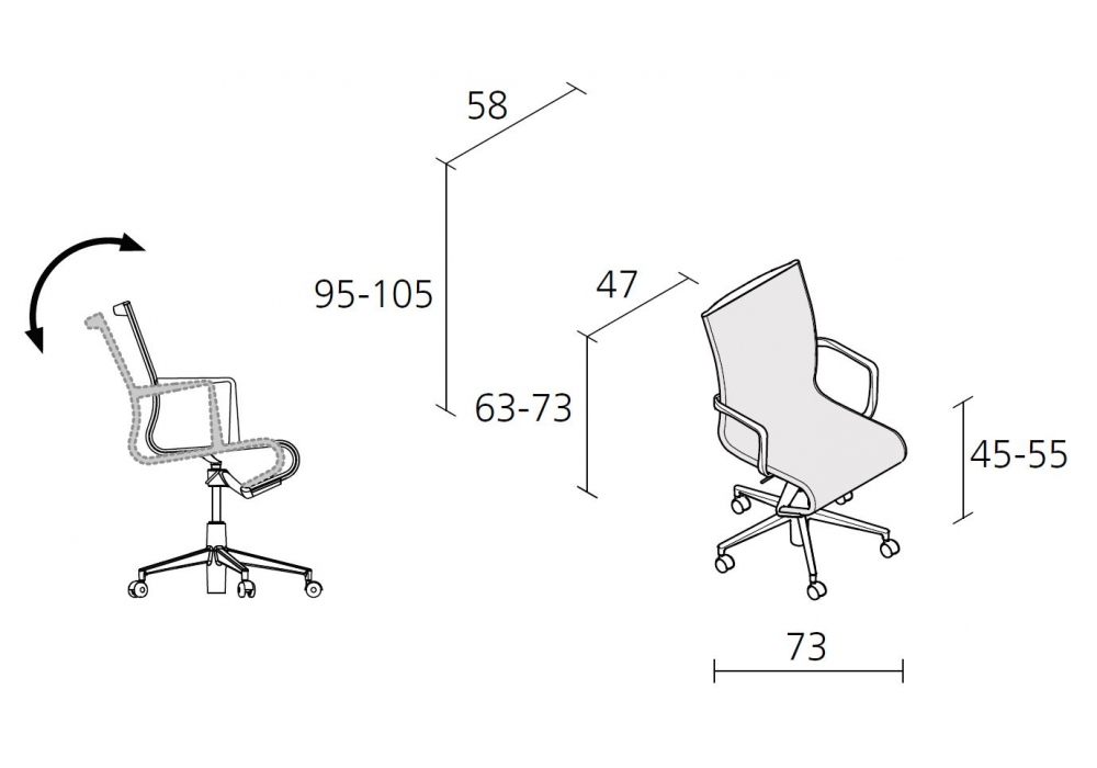 445 Rollingframe 47, entworfen von Alberto Meda für Alias, ist ein Stuhl mit Armlehnen und Rollen, 5-Sterne-Drehbasis. Struktur aus extrudiertem Aluminiumprofil und Aluminiumdruckgusselementen. Sitz und Rückenlehne aus feuerfestem kvadrat®-Stoff mit Netzbezug oder aus Pelle Frau-Leder.