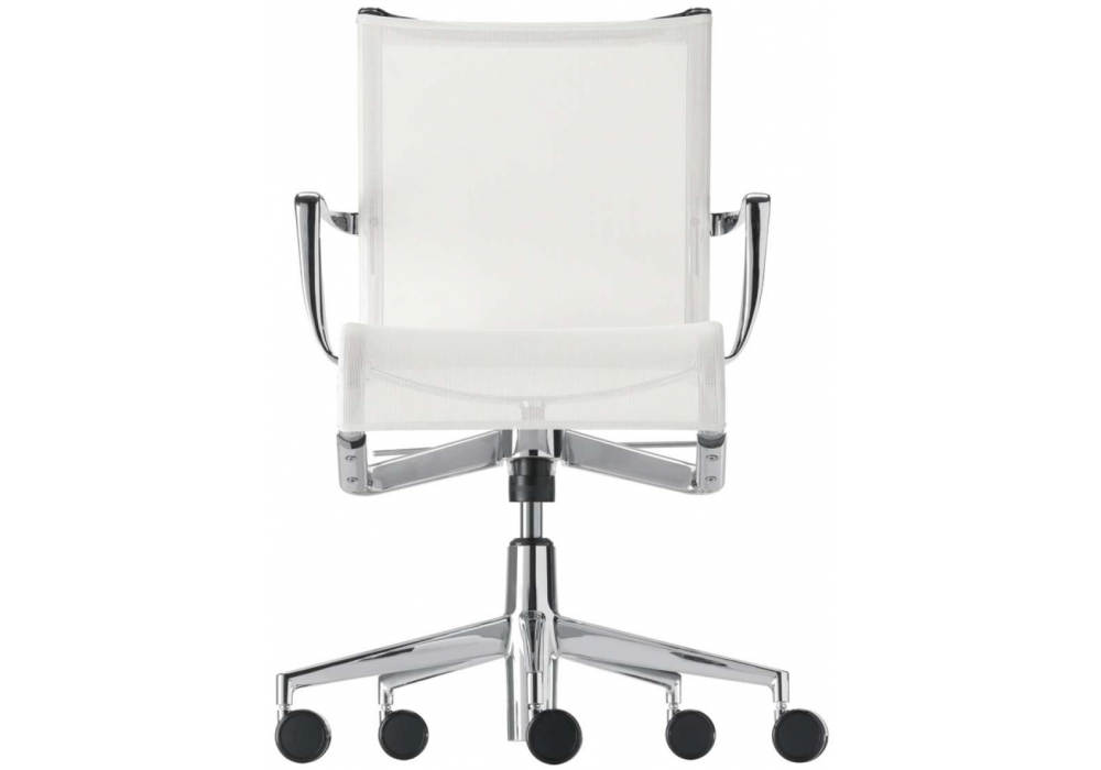 445 Rollingframe + Tilt 47, entworfen von Alberto Meda für Alias, ist ein Stuhl mit Armlehnen und Rollen, 5-Sterne-Drehbasis. Struktur aus extrudiertem Aluminiumprofil und Aluminiumdruckgusselementen. Sitz und Rückenlehne aus feuerfestem Polyestergewebe. Der Stoff ist auf einem Netz der gleichen Farbe wie die Struktur montiert.