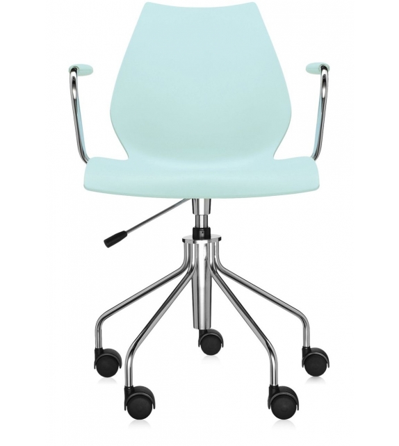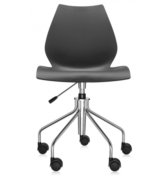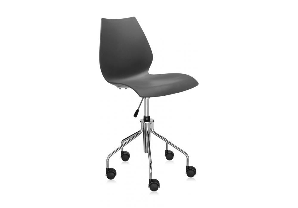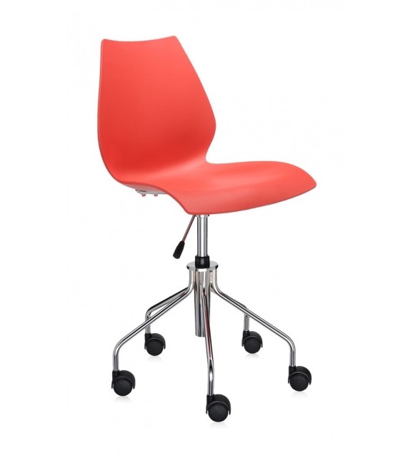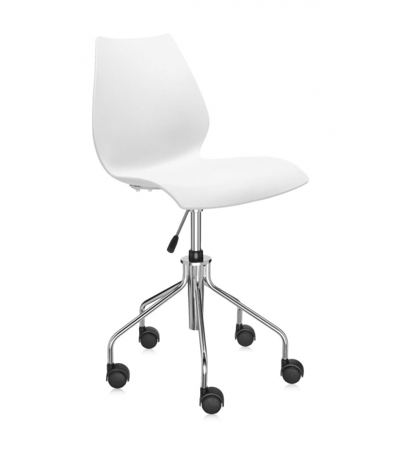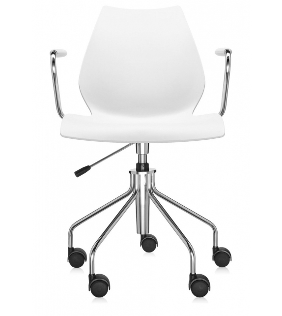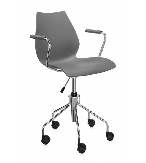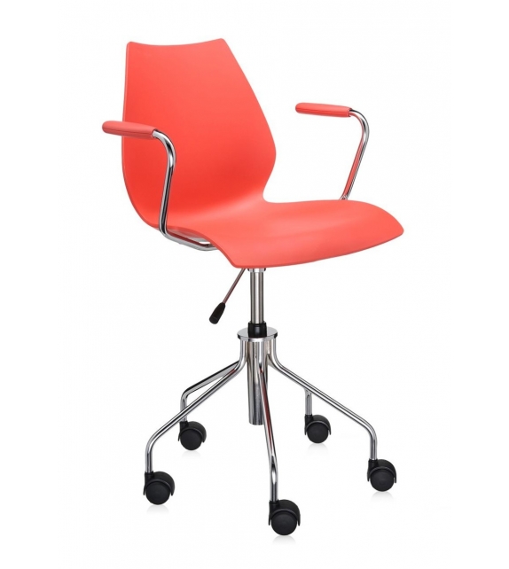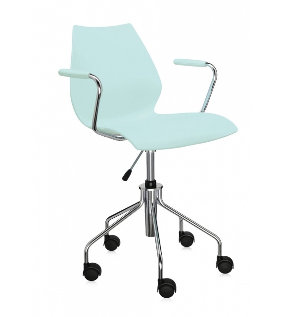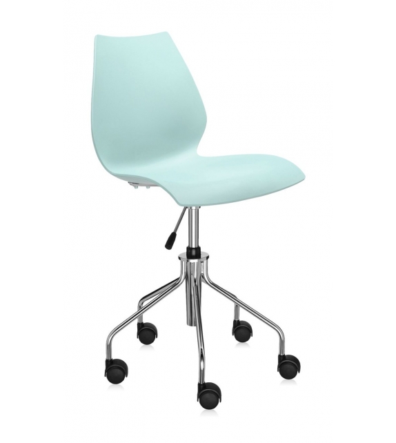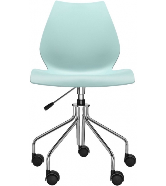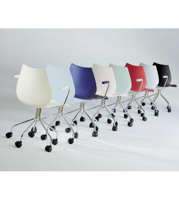 Maui von Vico Magistretti für Kartell entworfen, ist ein Stuhl auf Rädern mit oder ohne Armlehnen aus verchromtem Stahlgestell und Schale aus durchgefärbtem Polypropylen. Verfügbar in mehreren Ausführungen.