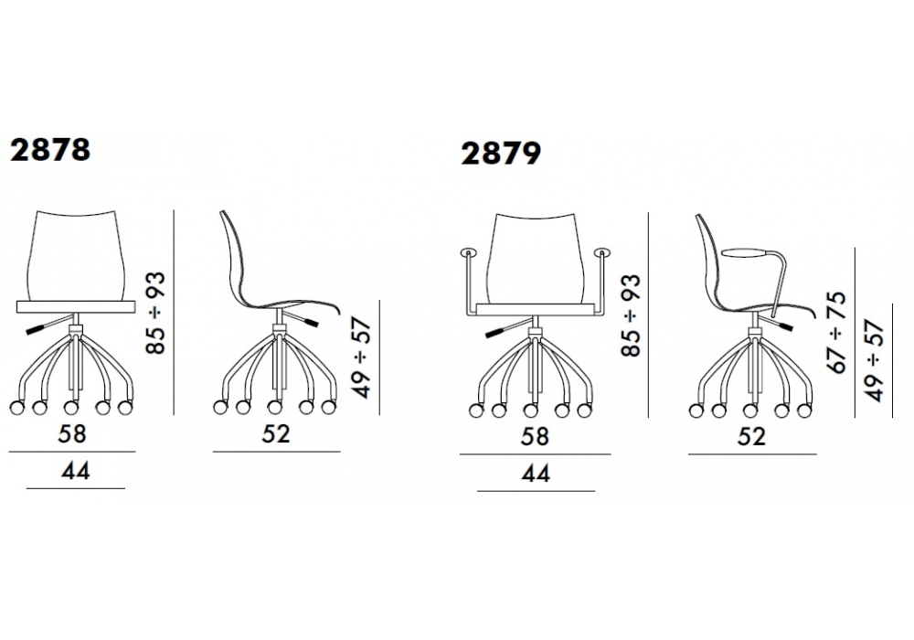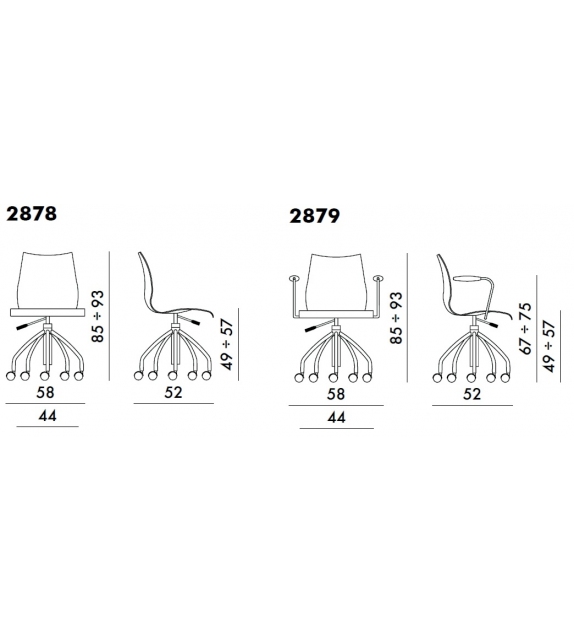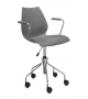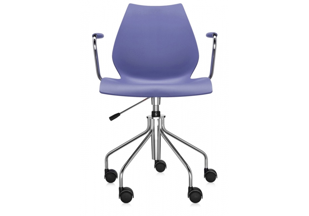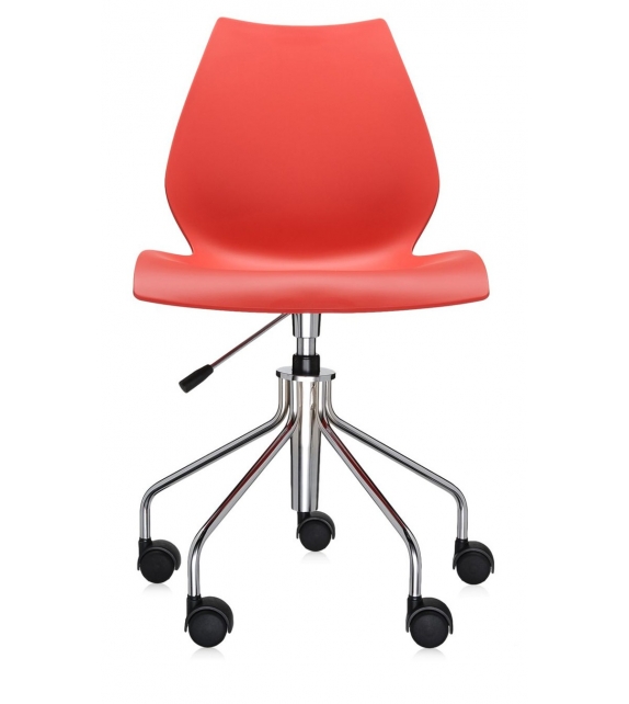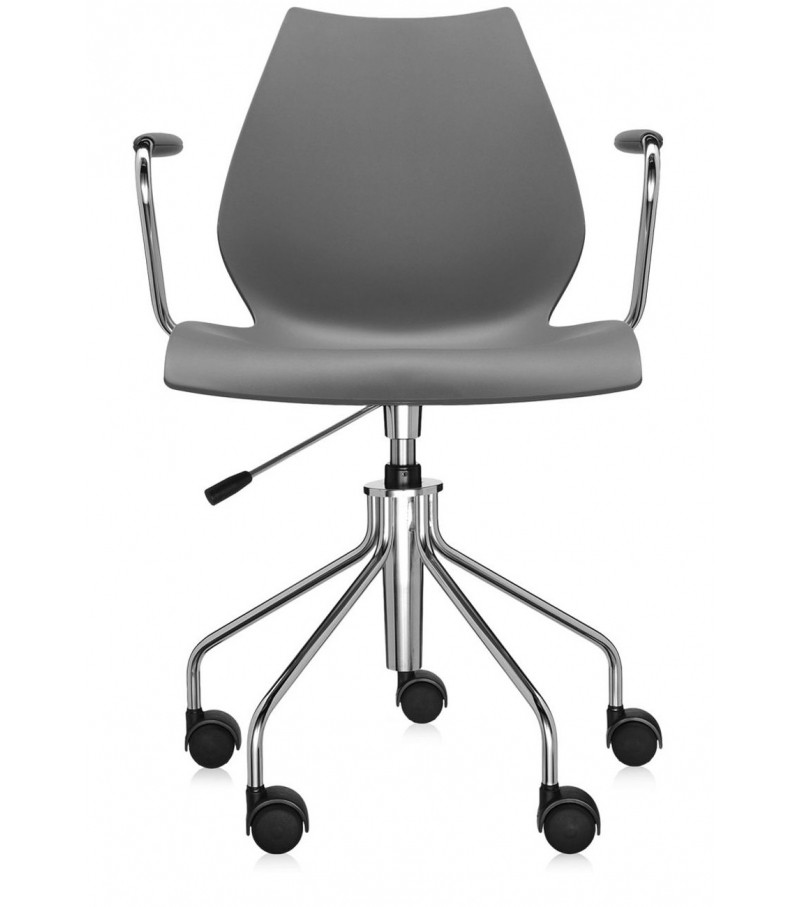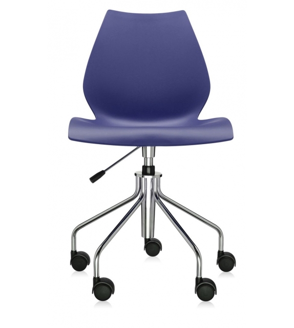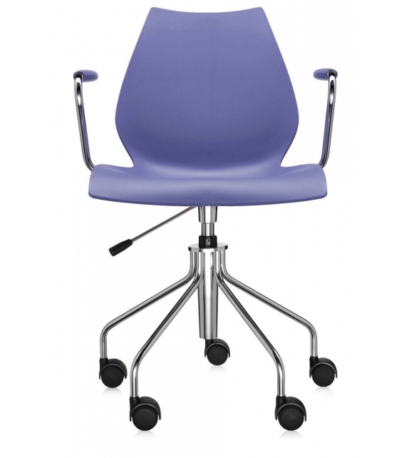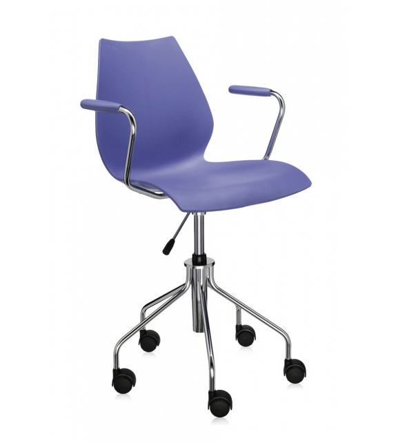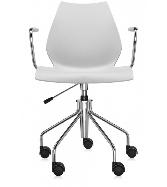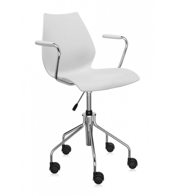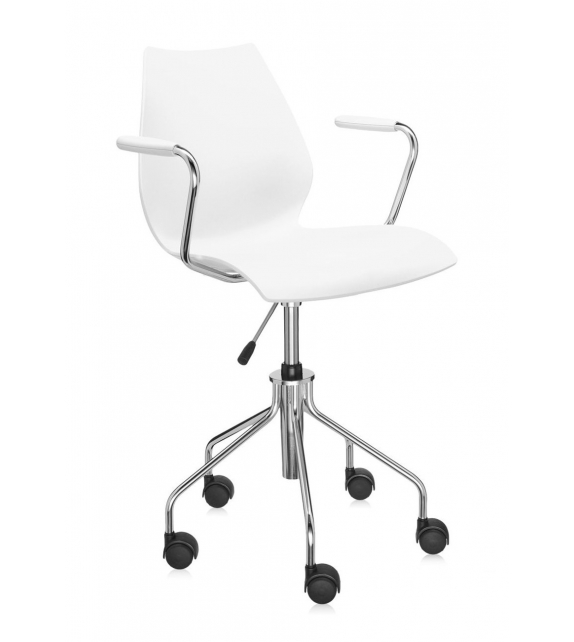 Maui von Vico Magistretti für Kartell entworfen, ist ein Stuhl auf Rädern mit oder ohne Armlehnen aus verchromtem Stahlgestell und Schale aus durchgefärbtem Polypropylen. Verfügbar in mehreren Ausführungen.