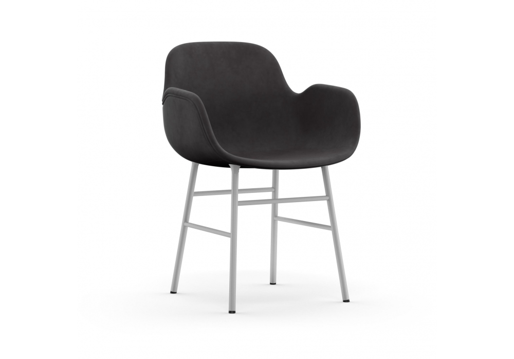 Form von Simon Legald für Normann Copenhagen entworfen, ist ein Sessel mit Beinen aus Stahl oder Holz, bezogen mit Stoff oder Leder. Diese gepolsterte Version von Form betont die Grundidee des Designs und veranschaulicht geschickt, wie die entschlossene Form und die sorgfältig durchdachte Silhouette eine wahrnehmbare Dimension und einen noch angenehmeren Komfort erhalten. Form ist mit Holz- oder Metallbeinen in verschiedenen Ausführungen und Farben sowie mit verschiedenen Arten von Leder- oder Stoffbezügen erhältlich.