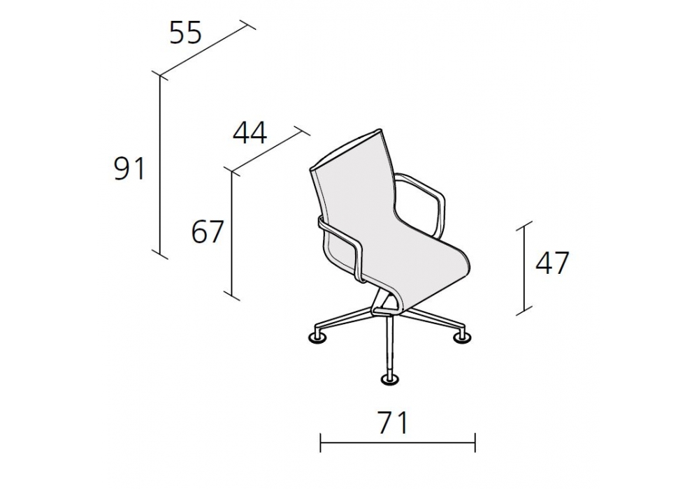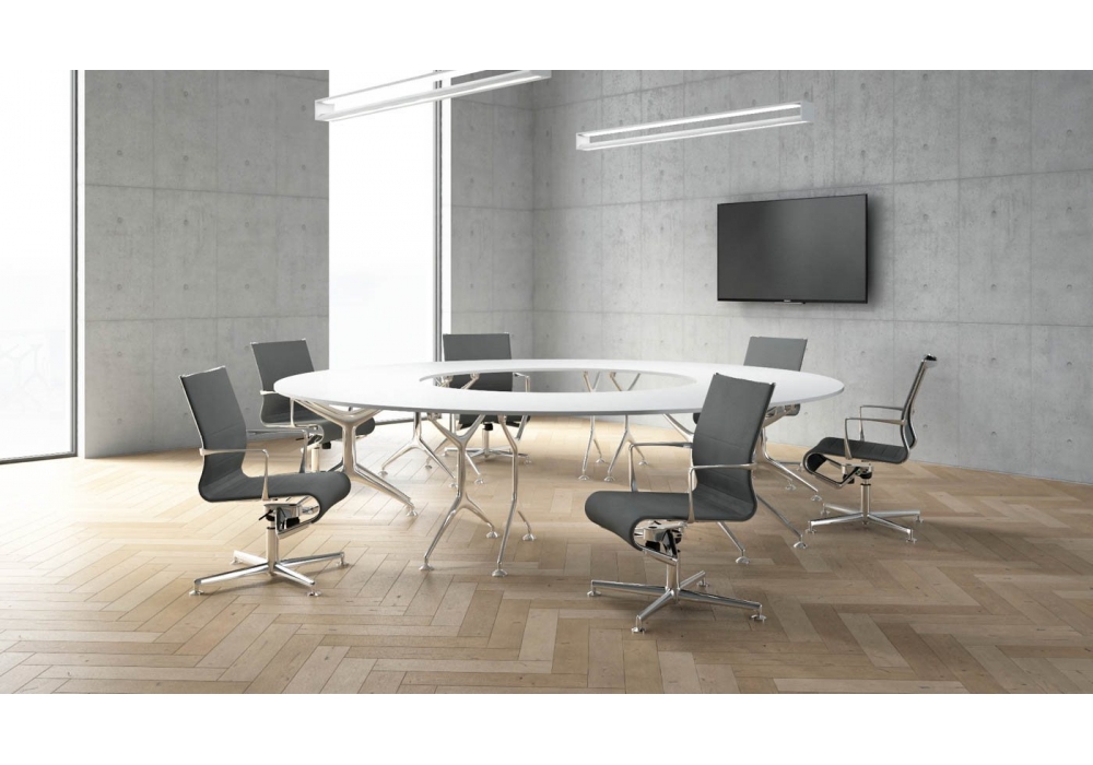 437 Meetingframe 44 entworfen von Alberto Meda für Alias ist ein Drehstuhl mit Armlehne, 4-Fußkreuz, extrudierter Aluminiumstruktur, Sitz und Rückenlehne in der feuerfesten Polyester-Netz oder Pelle Frau oder Kvadrat bedeckt. Erhältlich in verschiedenen Ausführungen.