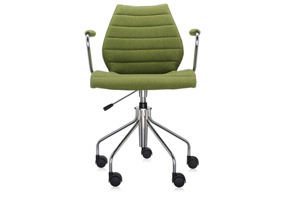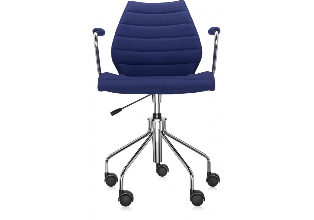Maui Soft von Vico Magistretti für Kartell entworfen, ist ein Stuhl mit Rädern aus verchromtem Stahl und Schale aus Nylon mit Stoff bezogen.