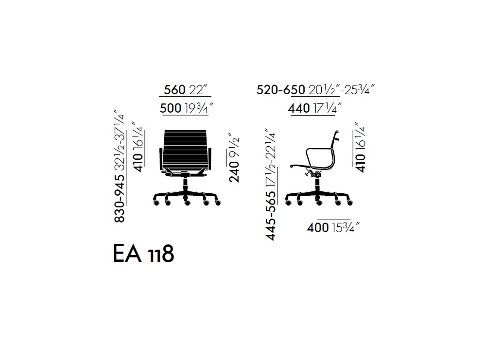 Aluminium Chair EA 118 von Charles und Ray Eames für Vitra ist ein Bürostuhl, gehört zur Kollektion Aluminium Group. Das charakteristische Element ist die intelligente Materialkombination für unvergleichlichen Komfort: Die Polsterung ist in den seitlichen Aluminiumprofilen und damit am tragenden Element der Struktur befestigt. Erhältlich in verschiedenen Ausführungen der Basis und der Polsterung.