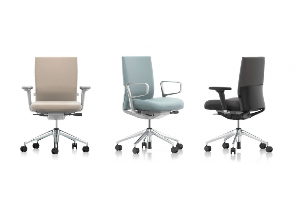 ID Soft, entworfen von Antonio Citterio für Vitra, ist ein Bürodrehstuhl aus der ID Chair Concept-Kollektion. Der Stuhl mit höhenverstellbarer Rückenlehne hat eine Fünf-Sterne-Basis mit Doppelrädern und ist mit höhenverstellbaren 2D-, 3D- oder Stahlarmlehnen sowie einem Flowmotion-Mechanismus erhältlich. Rücken und Sitz aus silk mesh.