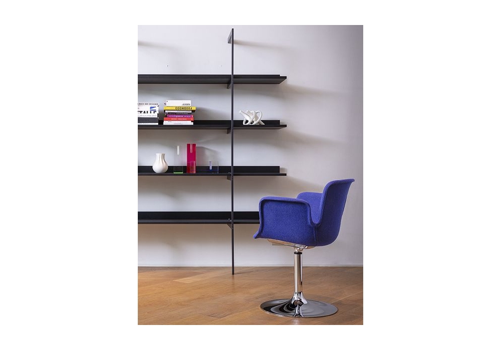 Juli Soft von Werner Aisslinger für Cappellini entworfen, ist ein armstuhl mit drehbarer Becherbasis, Armlehnen aus Kunststoff mit festem Stoffbezug. Bezug und Struktur in mehreren Ausführungen erhältlich.