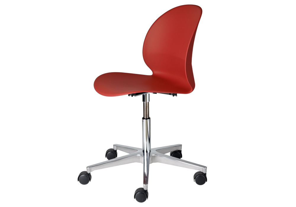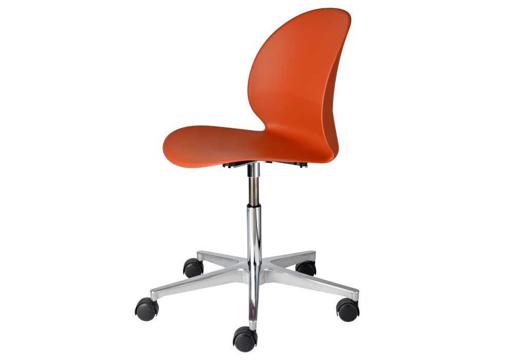 N02™ Recycle von Nendo für Fritz Hansen entworfen, ist ein Drehstuhl mit 5 Rädern aus Kunststoffsitz und polierter Aluminiumbasis. Verfügbar in mehreren Ausführungen.