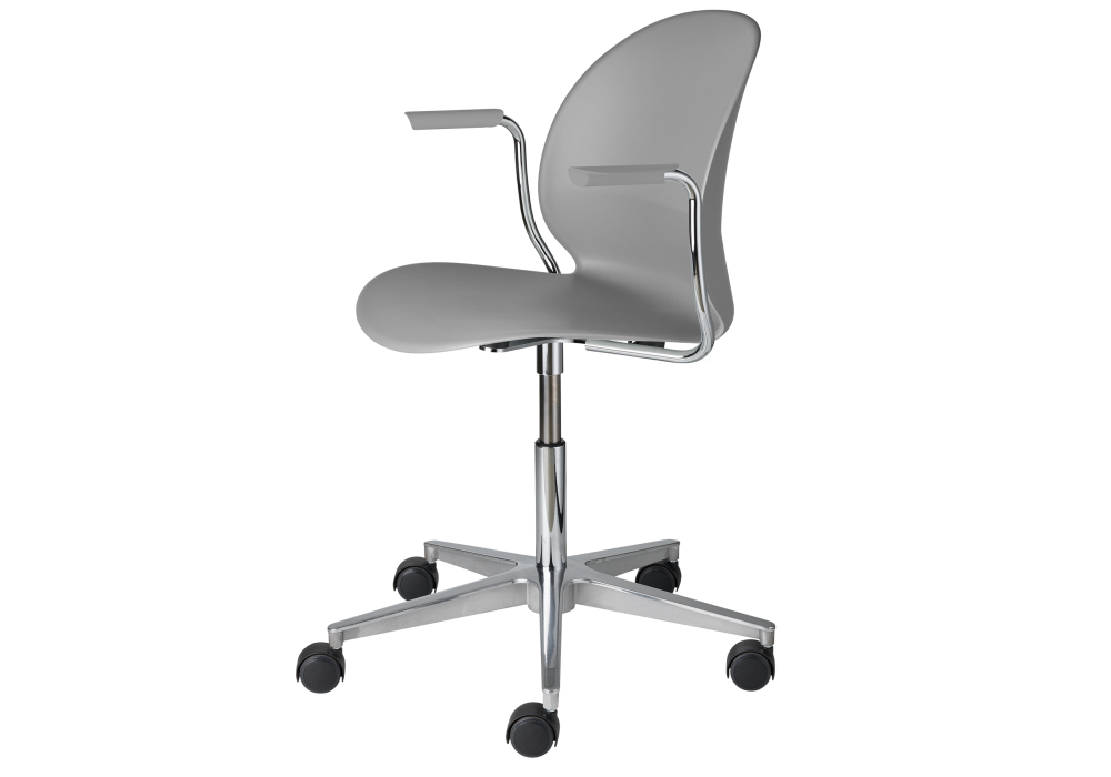 N02™ Recycle von Nendo für Fritz Hansen entworfen, ist ein Stuhl mit 5 Rädern aus Kunststoffsitz und poliertem Aluminiumfuß. Verfügbar in mehreren Ausführungen.
