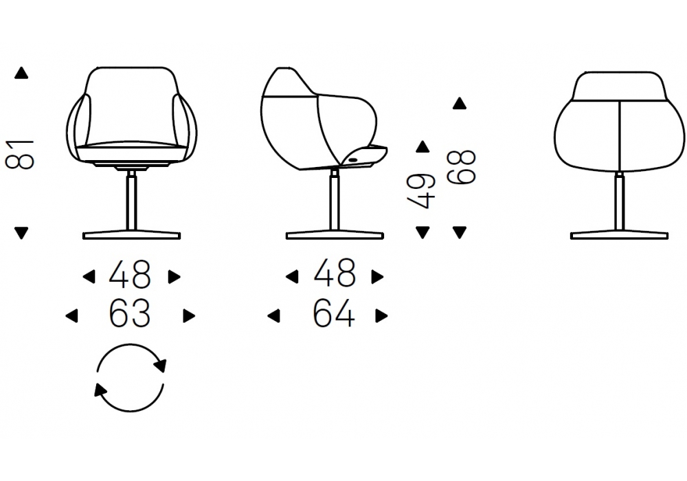 Bombè X, von Paolo Cattelan für Cattelan Italia entworfen, ist ein Drehstuhl mit 4-Sterne-Basis aus Stahl lackiert gaufriert und Bezug aus Stoff, synthetic Nubuck, Kunstleder oder Softleder.