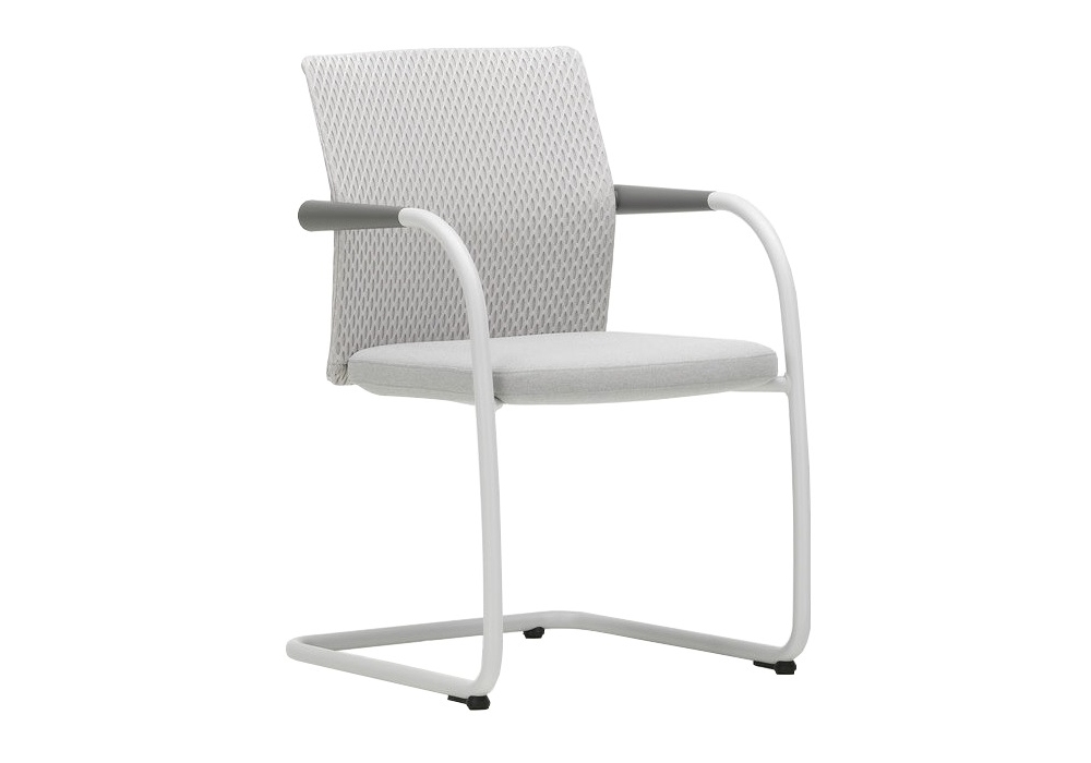 ID Visitor Mesh von Antonio Citterio für Vitra entworfen, ist ein Stuhl mit Rückenlehne aus Kunststoff mit 3D-Abstandsstoff bezogen, Armlehnen aus Polypropylen und Gestell aus Stahlrohr. Das Sitzkissen ist mit Polyurethanschaumpolsterung und Stoffbezug gefertigt. Verfügbar in mehreren Ausführungen.