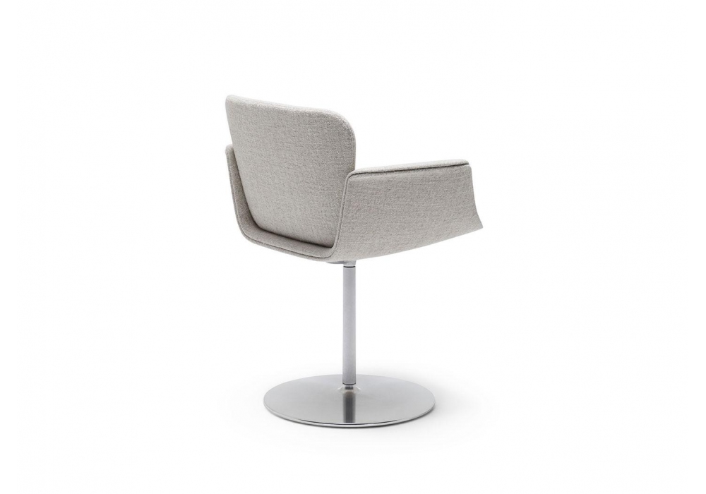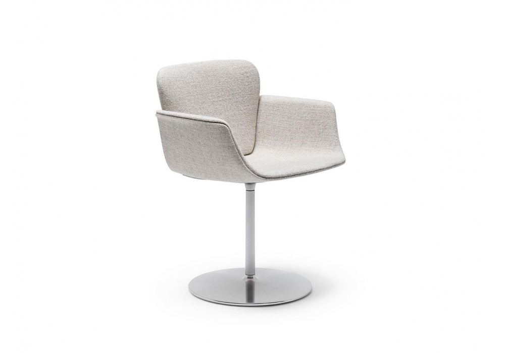 KN06 von Piero Lissoni für Knol entworfen, ist ein Stuhl mit Säulenfuß aus weiß oder schwarz lackiertem Aluminium. Schale in glänzendem Weiß, glänzendem Schwarz oder voll gepolstertem Fiberglas. Bezug aus Stoff oder Leder. Verfügbar in der Version mit festem oder drehbarem Fuß.