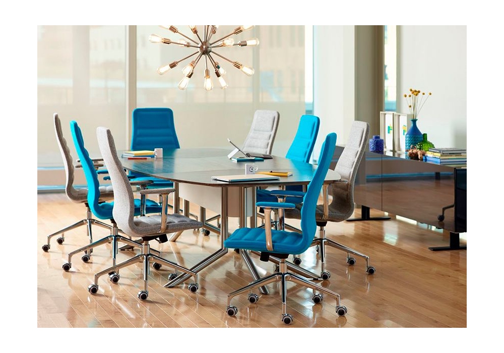 Lotus (Medium) von Jasper Morrison für Cappellini entworfen, ist ein kippbarer Bürodrehstuhl mit variabler Höhe mit 5-Speichen-Untergestell aus Aluminiumdruckguss auf Rädern, Polsterung aus Polyurethanschaum unterschiedlicher Dichte und fester Bezug aus Stoff oder Leder. Erhältlich mit oder ohne Armlehnen.