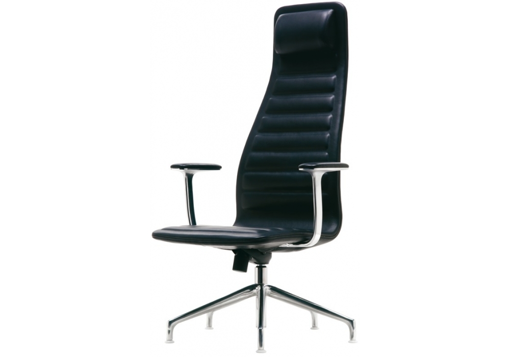 Lotus (High) von Jasper Morrison für Cappellini entworfen, ist ein kippbarer Bürodrehstuhl mit variabler Höhe mit 5-Speichen-Untergestell aus Aluminiumdruckguss, Polsterung aus Polyurethanschaum unterschiedlicher Dichte und fester Bezug aus Stoff oder Leder. Erhältlich mit oder ohne Armlehnen.
