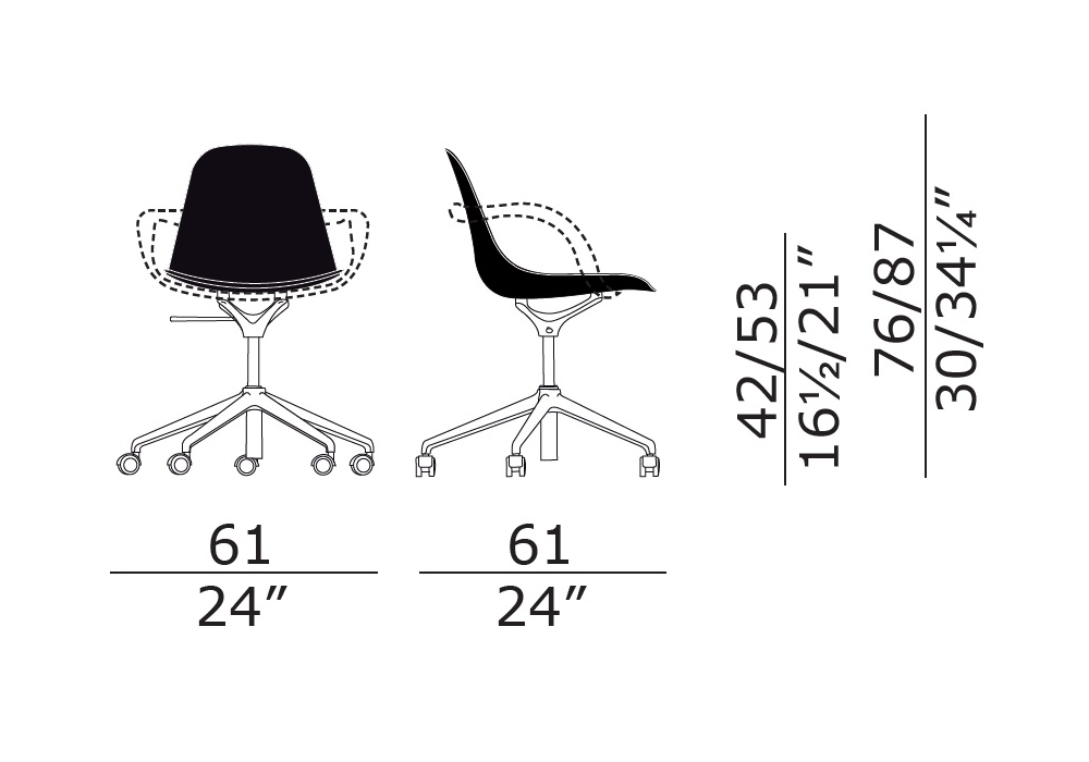 Couture 5 diseñada por Stefano Bigi para Enrico Pellizzoni es una silla giratoria con ruedas, carcasa de aluminio tapizada en diferentes materiales y colores. Disponible en diferentes versiones.