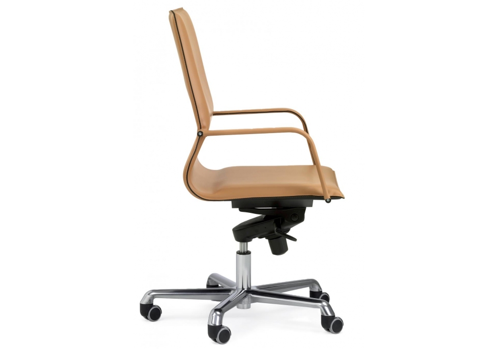 Lybra von RedCreative für Enrico Pellizzoni entworfen, ist ein Stuhl mit Stahlrohrstruktur, Sitz, Rückenlehne und Armlehnen mit Leder oder Leder bezogen, Gestell mit Rädern. Gas- und Neigungshöhenverstellung. Erhältlich in verschiedenen Ausführungen und in der Version mit hoher oder niedriger Rückenlehne.