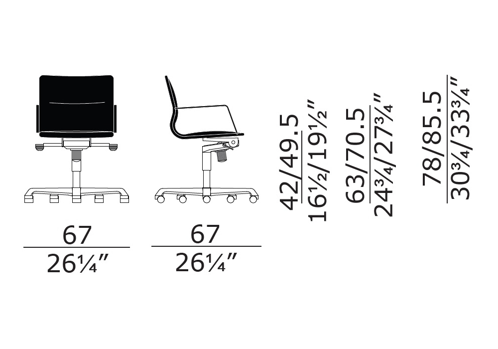 | Armlehnenhöhe | • 63/70,5 cm |