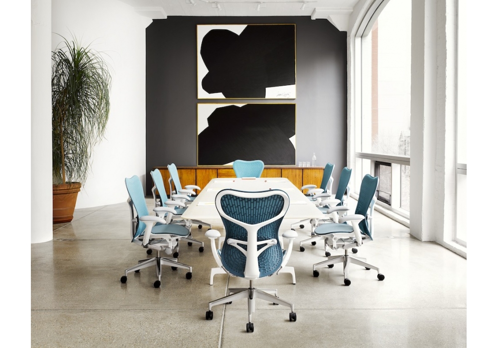 Mirra 2 von Studio 7.5 für Herman Miller entworfen, ist ein Bürostuhl, der in zwei Versionen mit unterschiedlichen Rückenlehnen erhältlich ist, eine aus dem flexiblen TriFlex-Material und die andere mit der reaktionsschnellen Butterfly-Rückenlehne. Der Sitz folgt jeder Bewegung im Einklang mit dem Körper. Beim Hinsetzen passt es sich sofort dem Körper an. Durch die Bewegung unterstützen Sitz und Rücken dynamisch jede kleinste Bewegung. Erhältlich in verschiedenen Ausführungen.