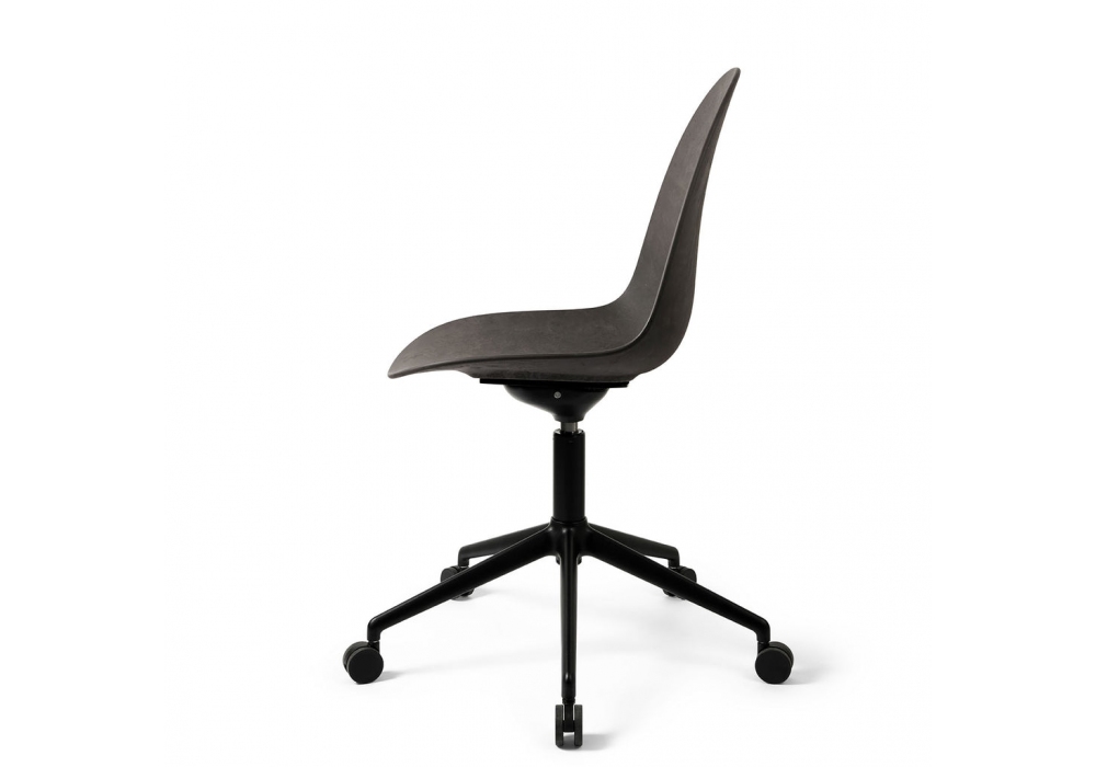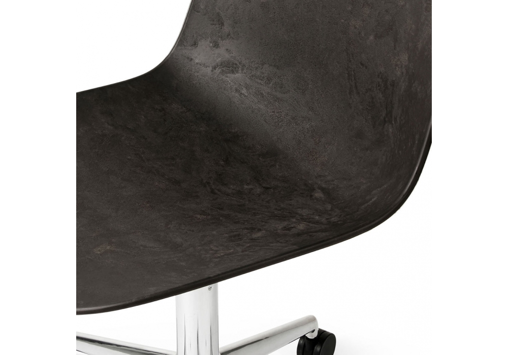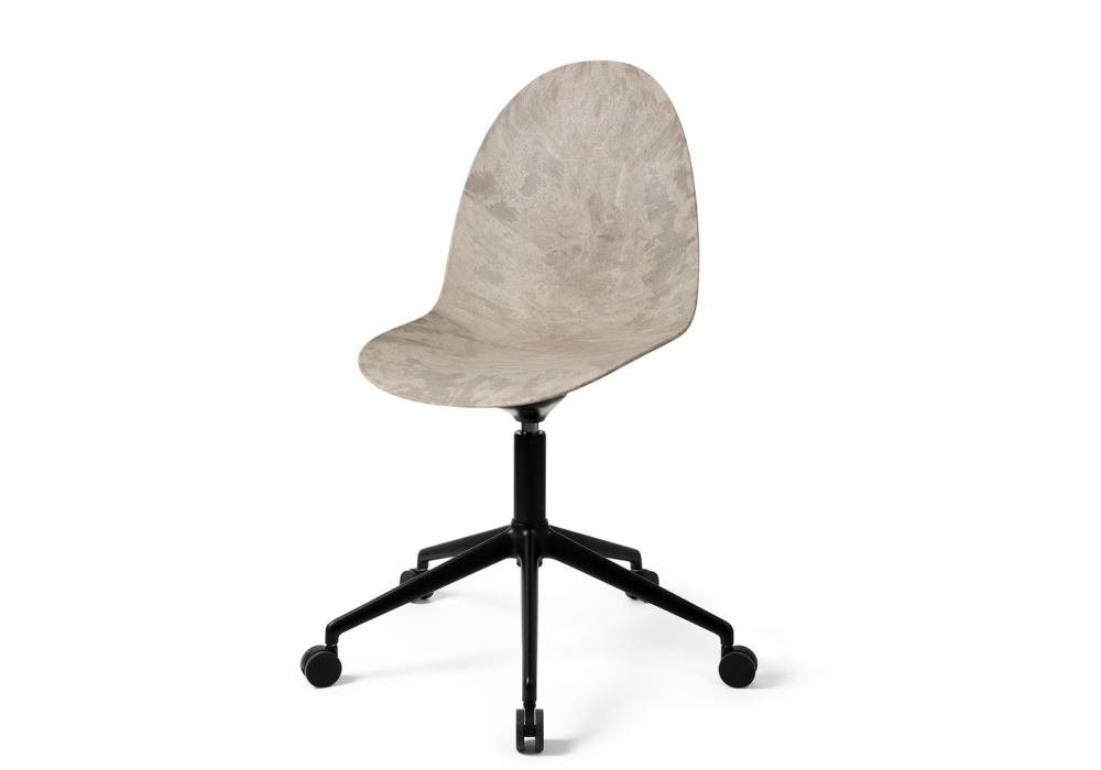 Eternity W/Castors von Space Copenhagen für Mater entworfen, ist ein Drehstuhl mit Rollen, Basis aus schwarz oder glänzend lackiertem Aluminium, Sitz aus Matek®.