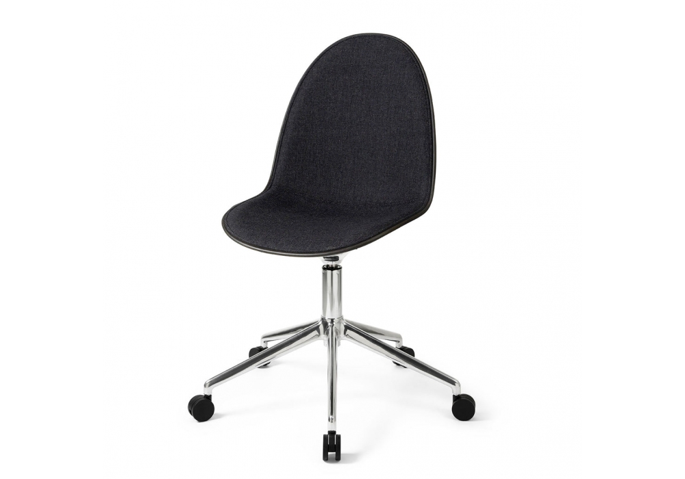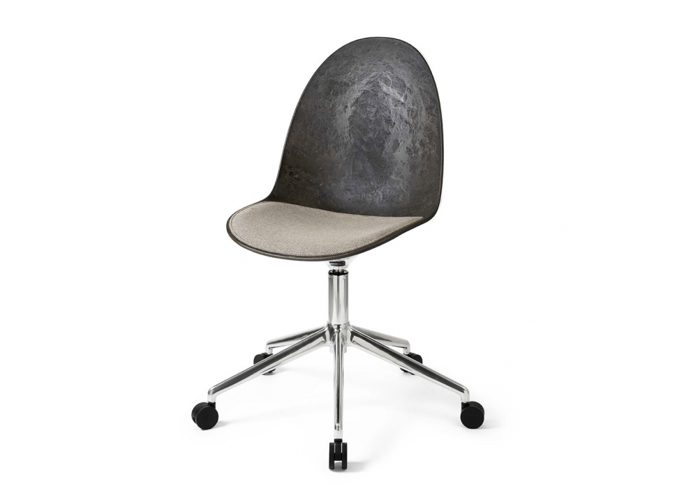 Eternity Swivel W/Castors von Space Copenhagen für Mater entworfen, ist ein gepolsterter Drehstuhl mit Rollen, Basis aus schwarz oder glänzend lackiertem Aluminium, Sitz aus Matek® mit Stoffbezug. Erhältlich in der Version mit vollständiger Abdeckung oder nur mit Abdeckung des Sitzes.